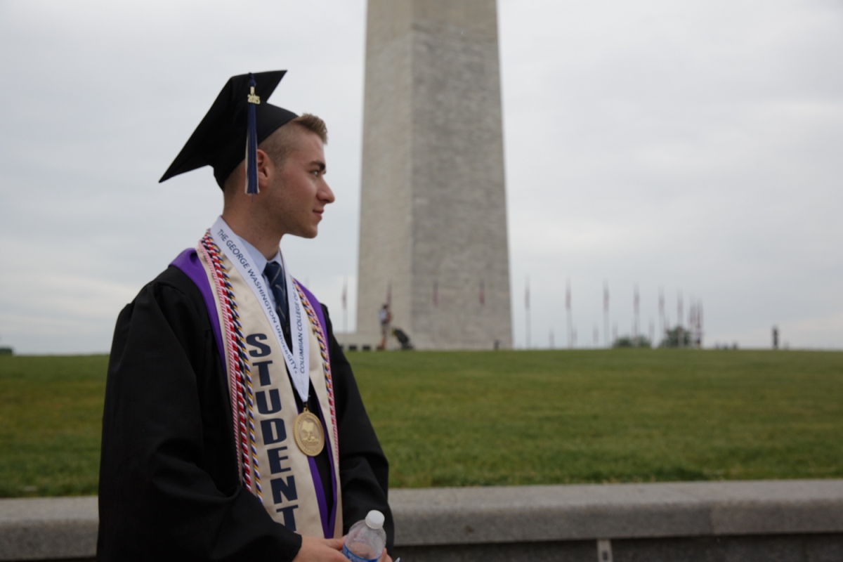 “To gather here in the shadow of the monument dedicated to the nation’s first president and our university’s namesake,” Dr. Lerman said, “is a fitting tribute to your achievement in completing your degrees.”
