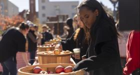 GW community enjoys healthy snack, live music and fall games on Kogan Plaza.