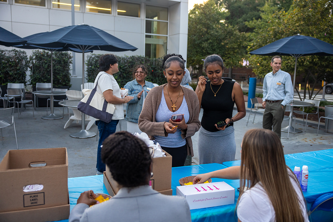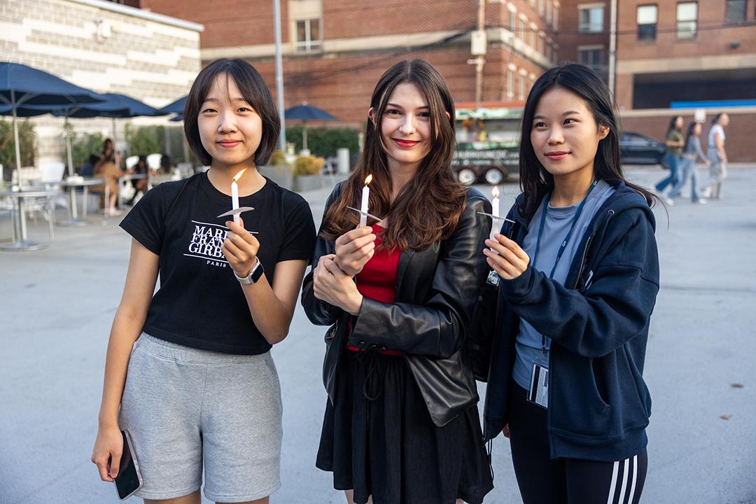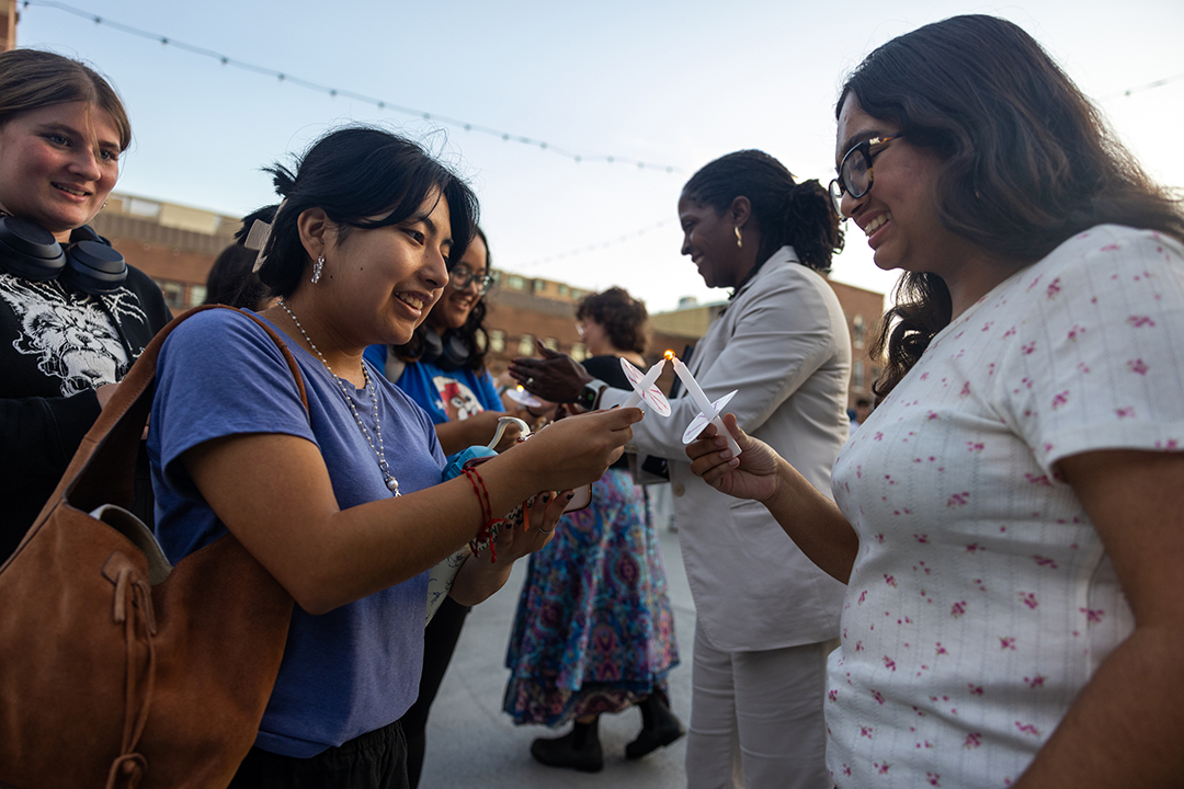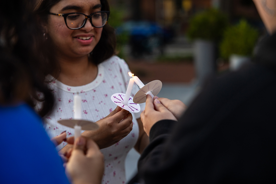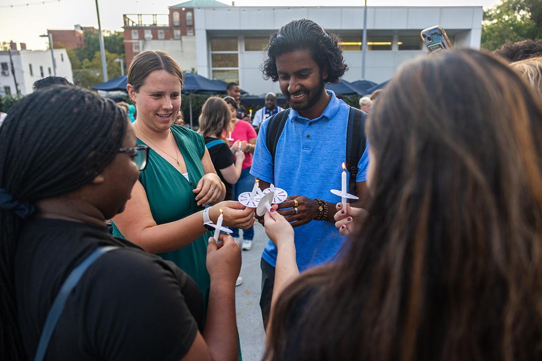 New students gathered in Potomac Square for a candle lighting ceremony hosted by the Division for Student Affairs’ Center for Interfaith and Spiritual Life. As they took their candles, students sparked new connections and set intentions for the year ahead. President Ellen M. Granberg, Vice Provost for Student Affairs and Dean of Students Colette Coleman and University Chaplain Kristen Glass Perez gave remarks to welcome the participants to begin their lives at GW rooted in community.