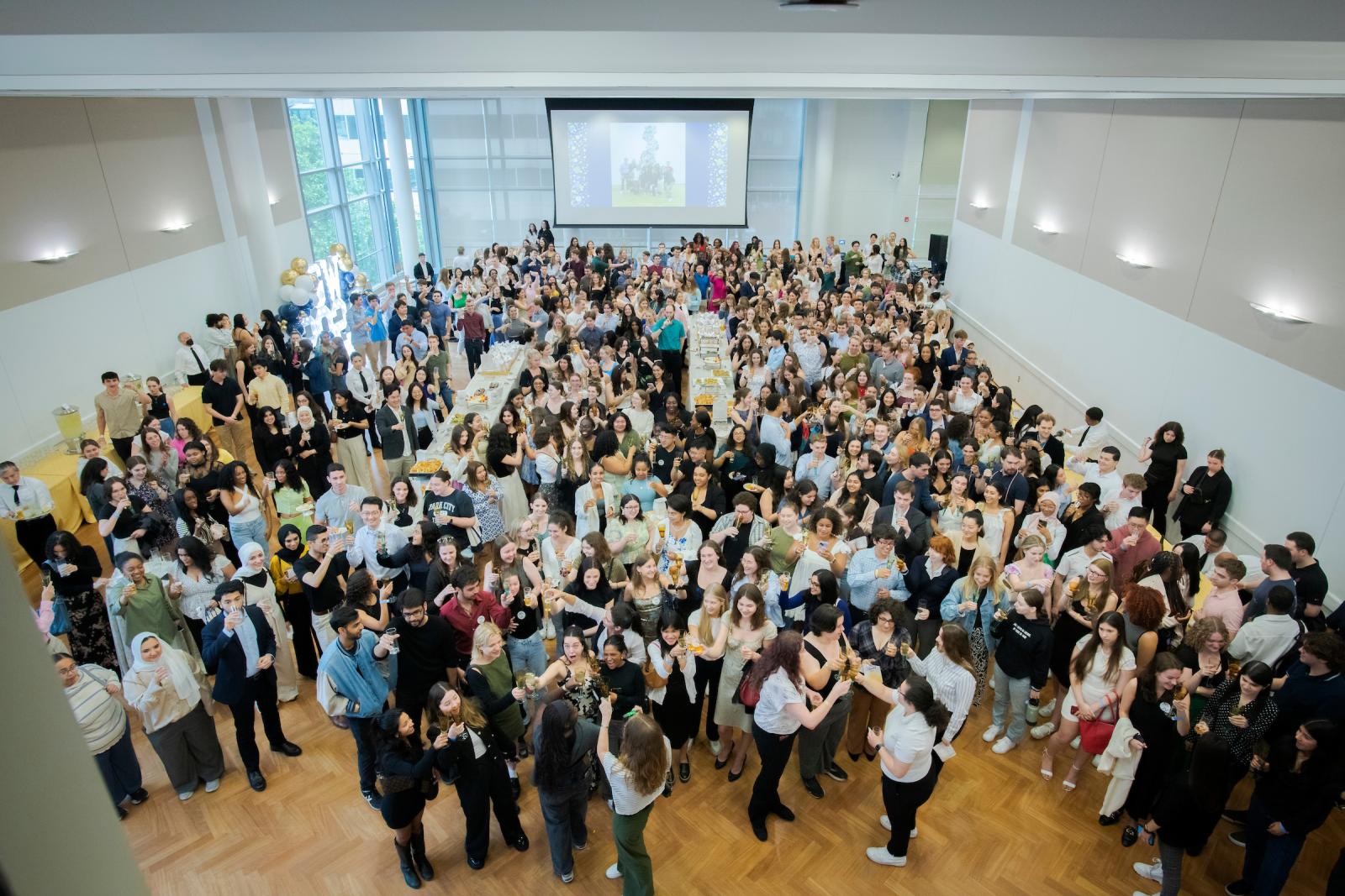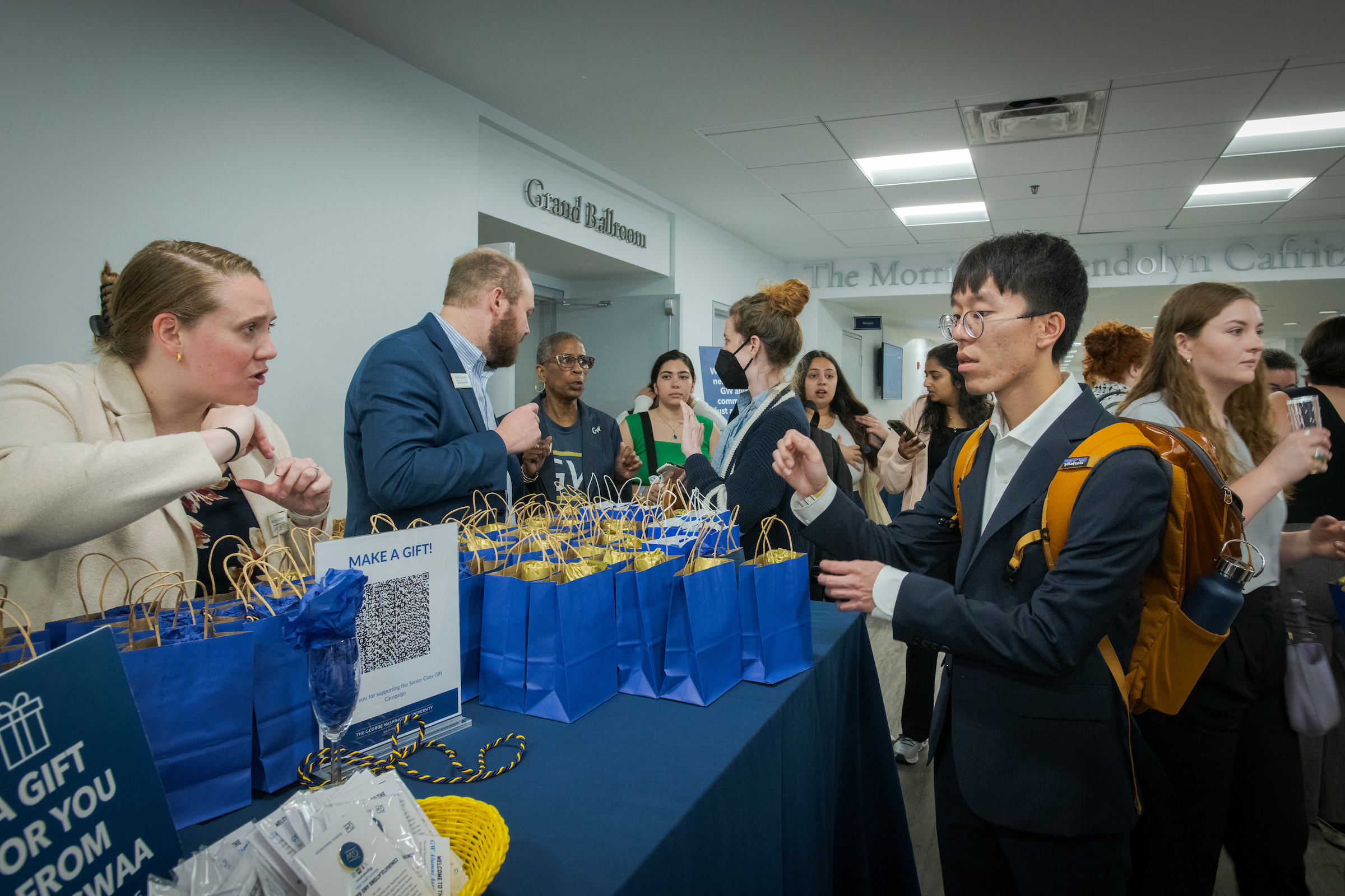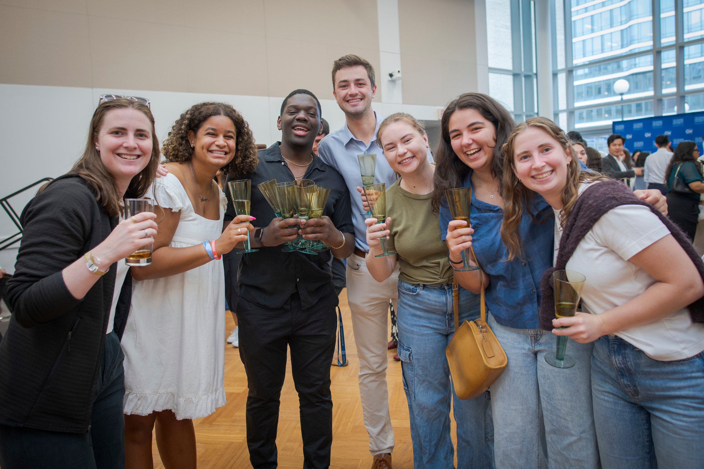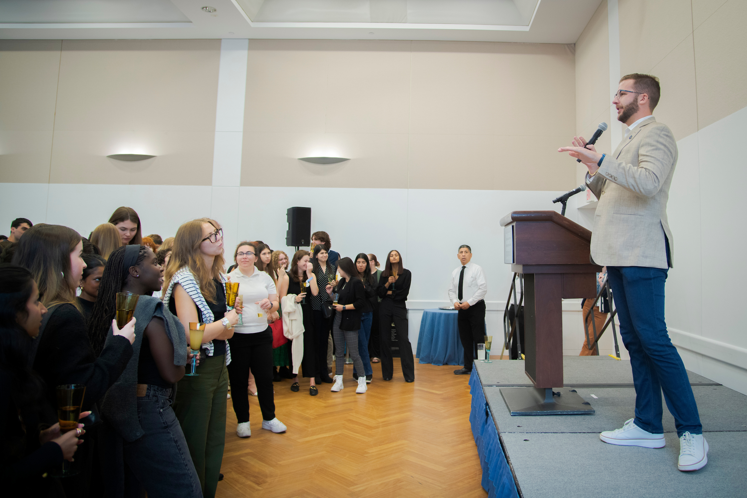 The George Washington University Class of 2024 raised a glass to the future Tuesday at GW’s annual Senior Class Toast, packing the Grand Ballroom at the University Student Center to celebrate their years of hard work and to look forward to whatever comes next.