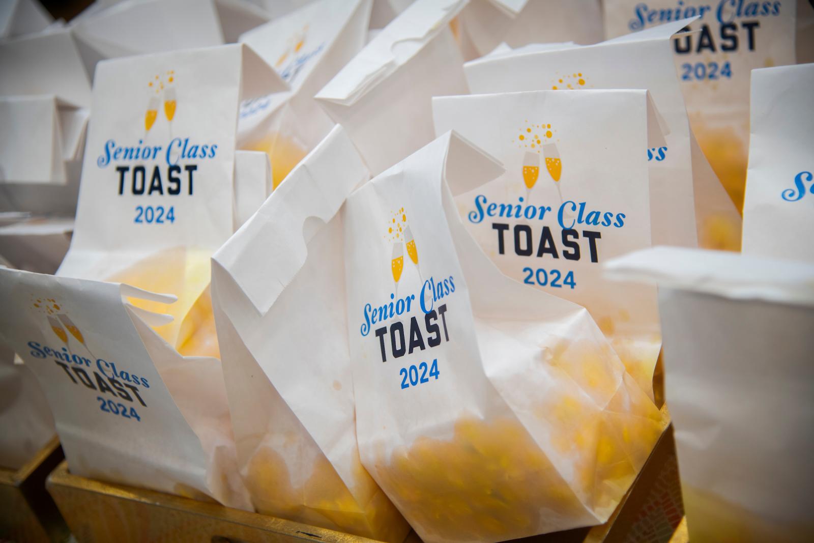 The toast served as an opportunity to announce progress on this year’s class gift, which has so far raised more than $9,800. Contributing to the class gift “is a way for us to pay it forward and give back to areas that made our time here, in hopes that future Revolutionaries can do the same,” senior class gift officer Zachary Rogalski said.