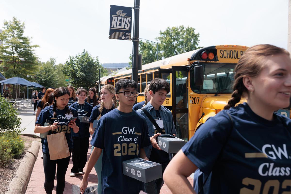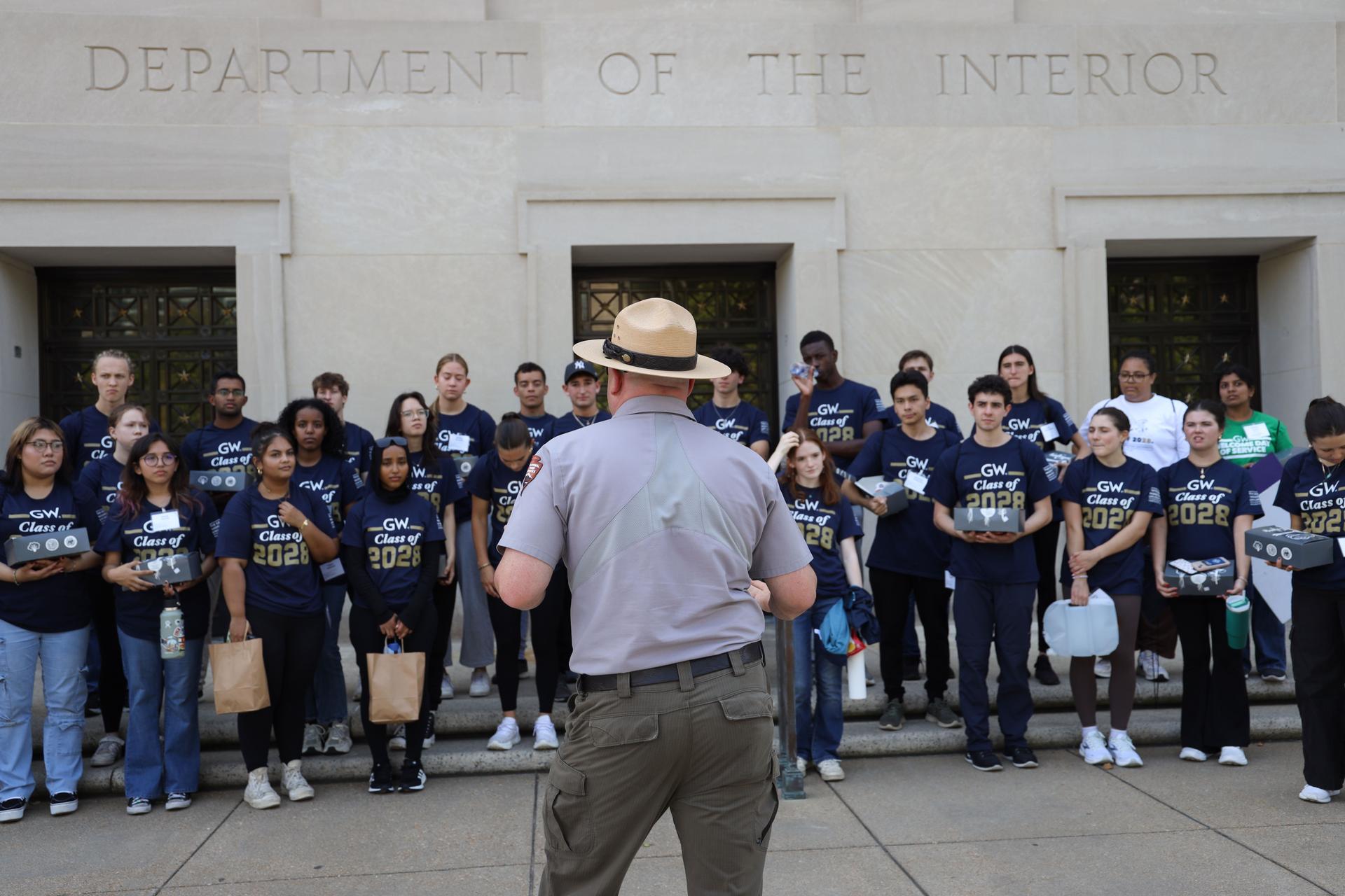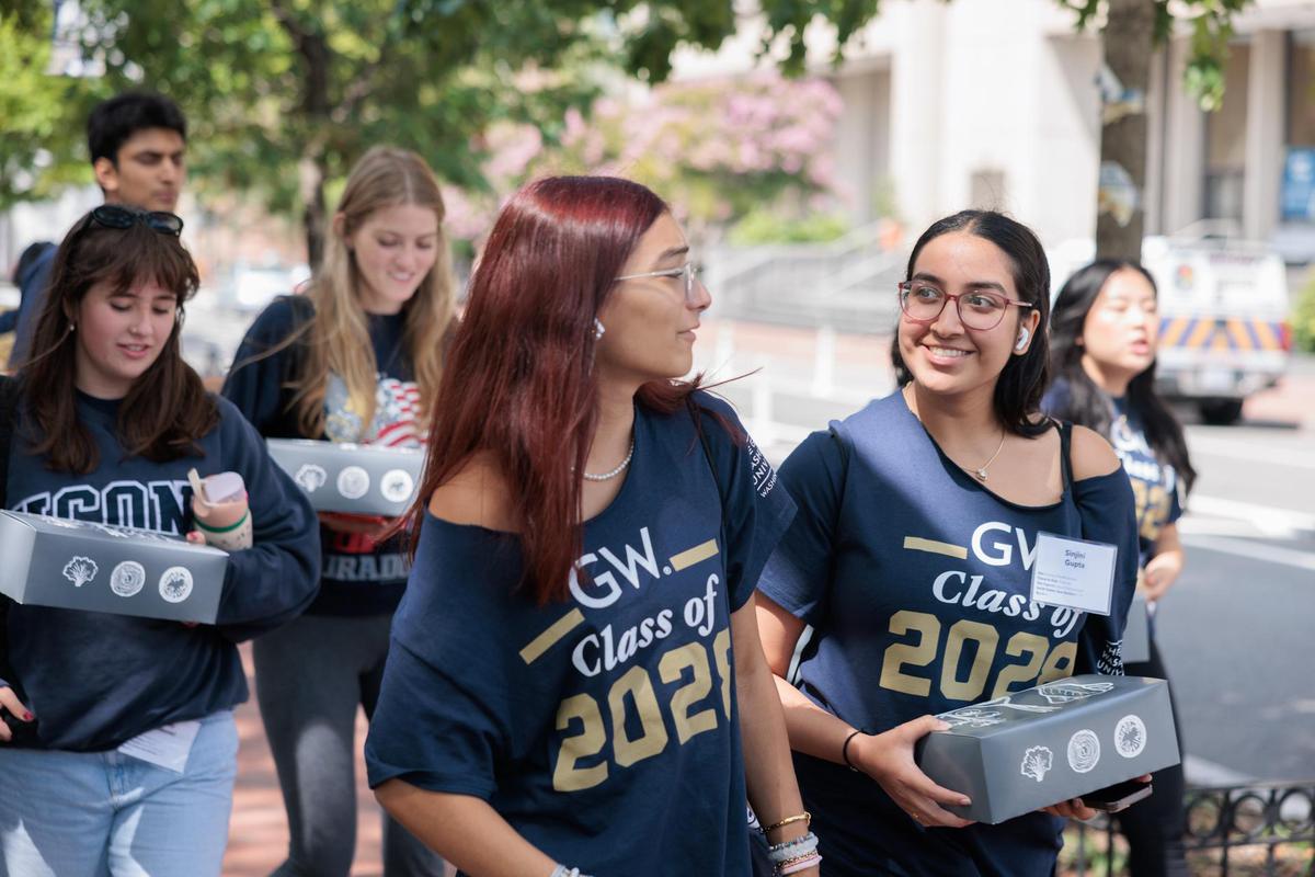 In 2010, GW officially named the day Freshman Day of Service and encouraged all first-year students to volunteer at local organizations. That year, the university focused beyond first responders and served alongside First Lady Michelle Obama. She challenged students to perform 100,000 hours of community service during the 2009-10 academic year and in return, she would speak at GW’s 2010 Commencement.