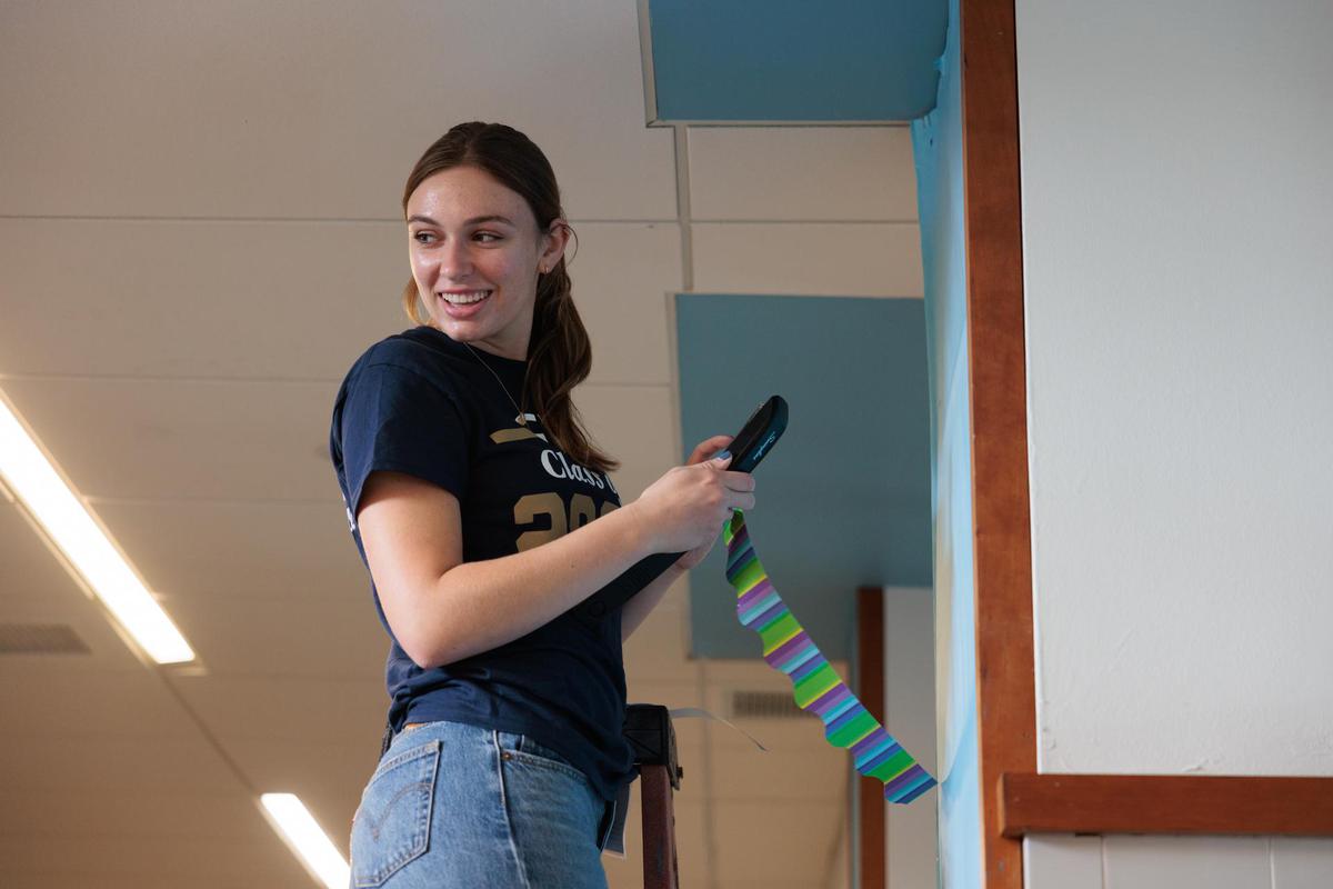 Quinn Dolan, a first-year student studying environmental science, was one of the volunteers helping prepare a classroom for the new school year. She wiped down toys, cleaned the cubbies and wrote name tags for the new children who would be using the classroom.