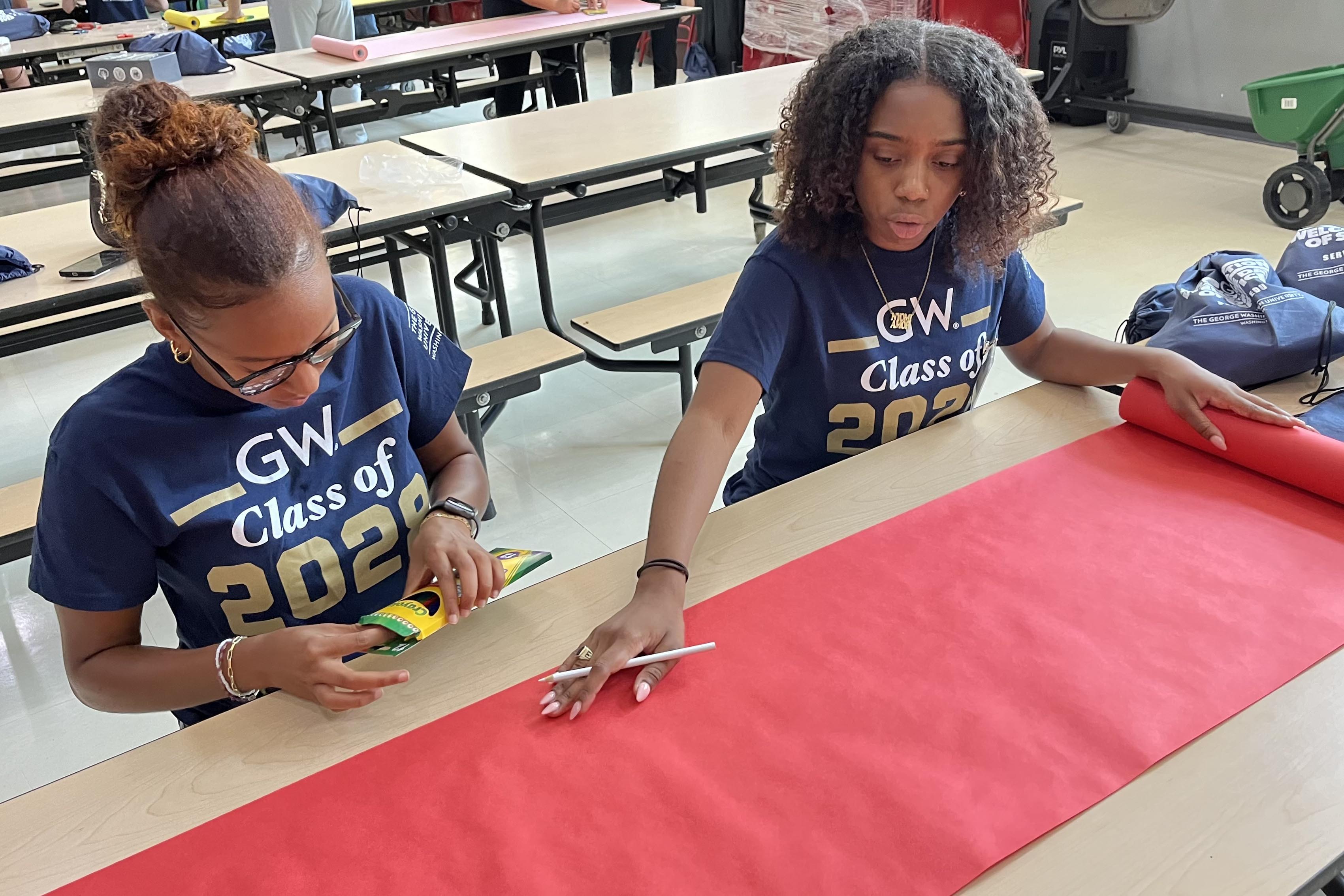“Just think about it. Two-, three- and four-year-old’s, their little, tiny feet walking around,” said Jessica Rich, a GW site leader who works at Malcolm X as a team leader on the GW Jumpstart program. “It’s a great big building to walk into. These projects are particularly important because they’ve never been here.”