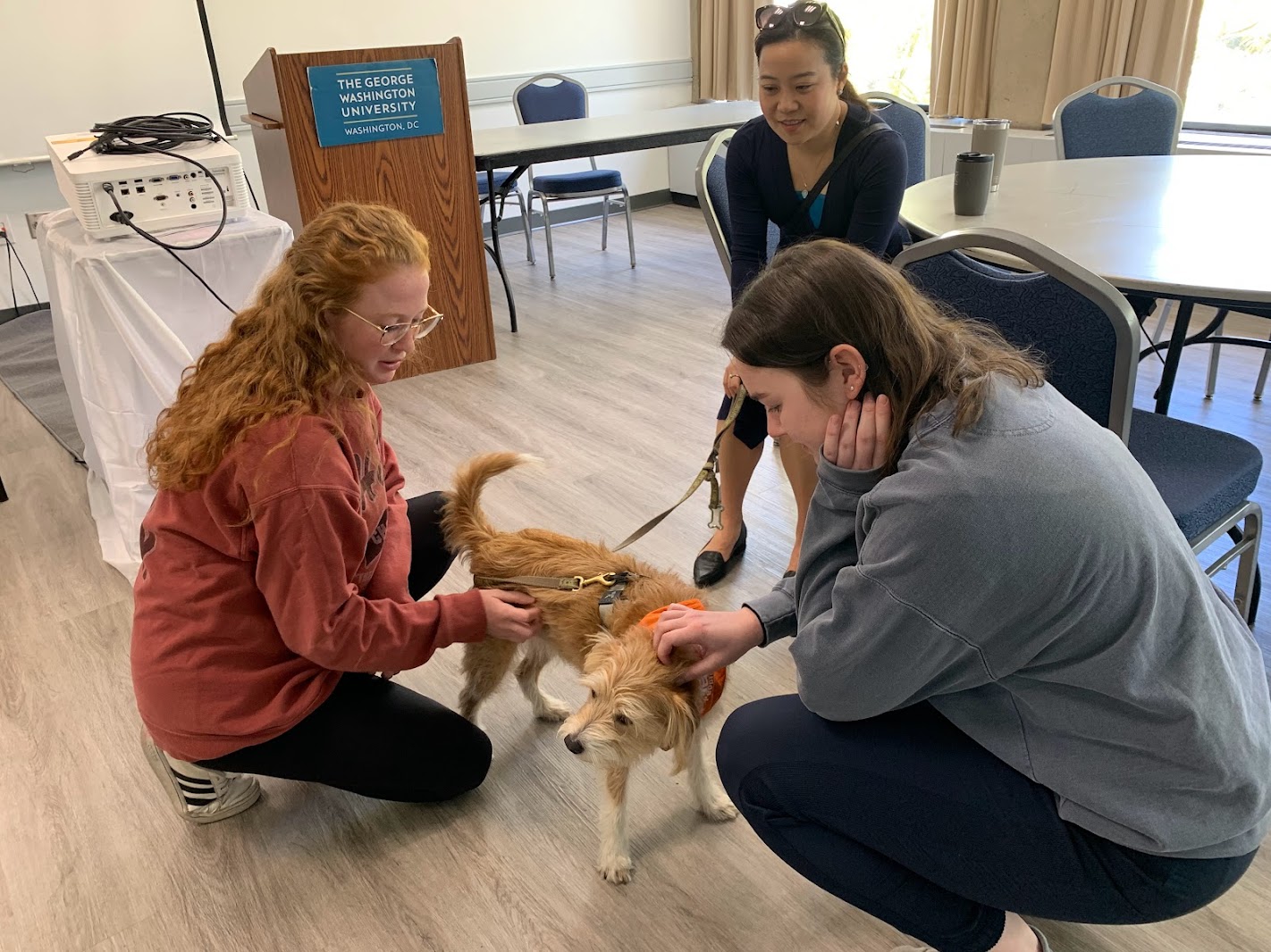 Community members in the George Washington University’s medical enterprise are no exception. Fortunately, the School of Medicine and Health Sciences’ Resiliency and Well-Being Center (RWC) has some powerful (and adorable) weapons in the fight against burnout. Their names are Wilma, Charlie and Oliver Toast—and they are trained therapy dogs with local nonprofit People Animals Love (PAL).