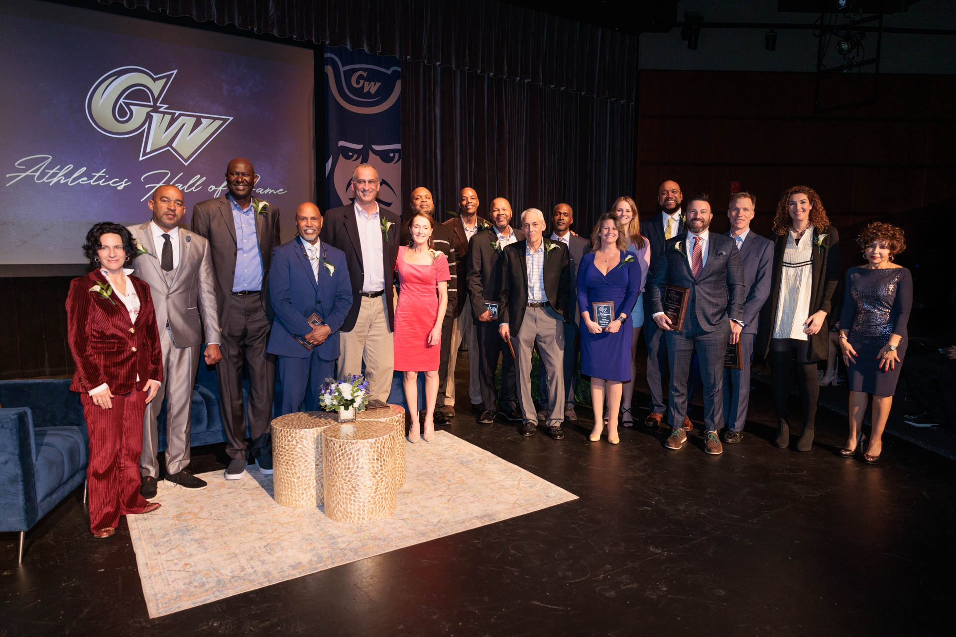 George Washington University inducted the Class of 2022 into the GW Sports Hall of Fame Friday night in Betts Theatre, with eight individuals and the 1993 men’s basketball team among those recognized for their contributions to GW athletics.