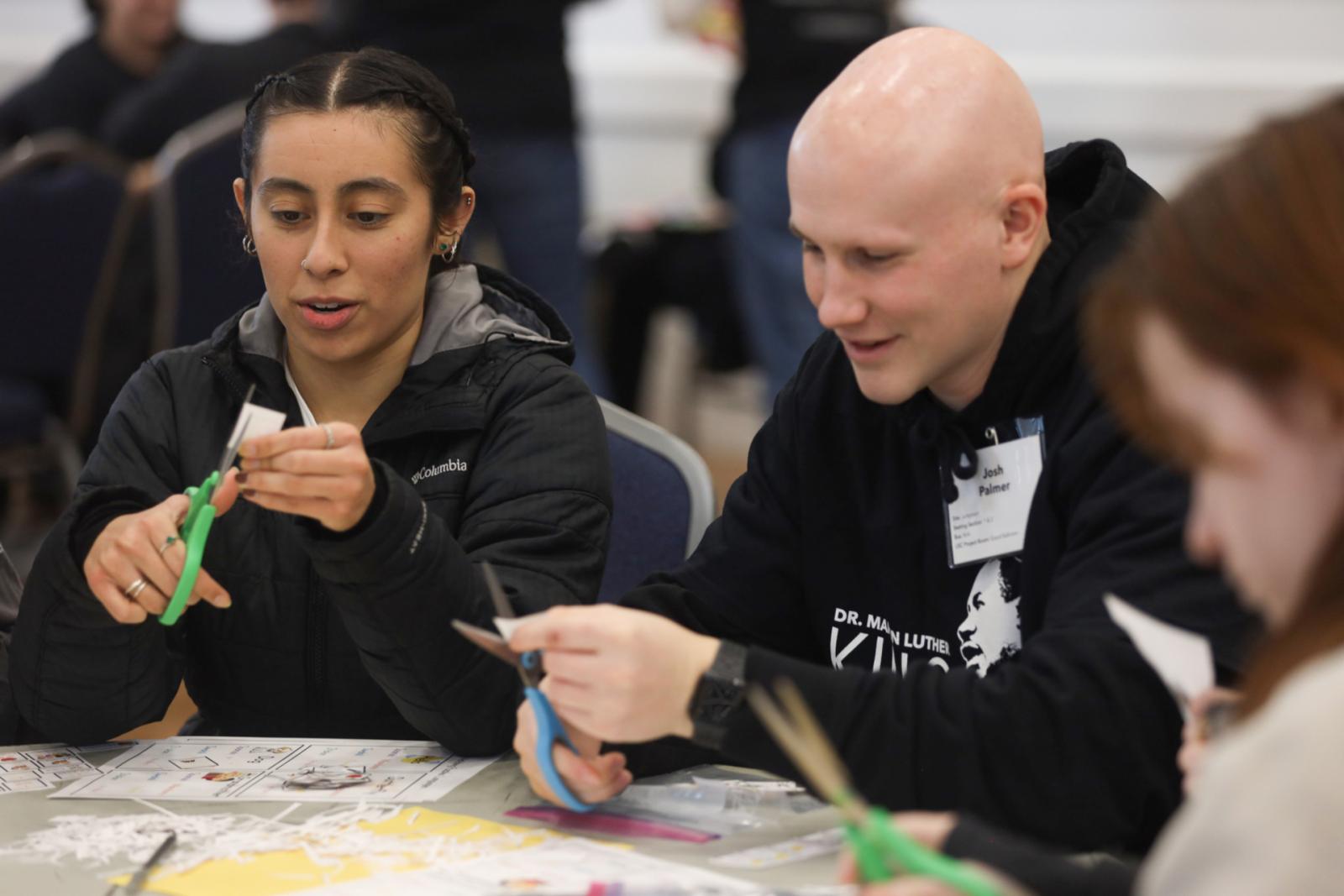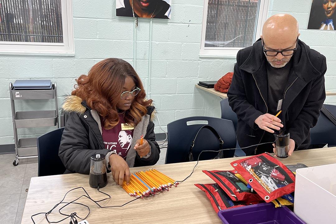 Motunrayo Fatoke, a graduate student in public policy, sharpened pencils and cleaned white boards beside Miguel Martinez, a graduate student studying cybersecurity. Fatoke said that her classes reinforce the idea of community service and engagement, so she volunteers throughout the year. “It is what King represents,” she said. “He brought transformational change.”