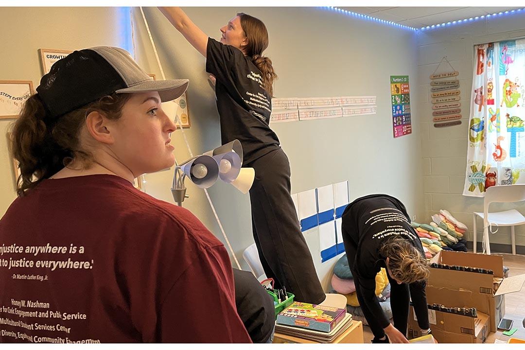 Nicolaysen, along with Reese Breaux, who is an international affairs major, organized lessons and inserted them in binders. Last year on the MLK Jr. Day of Service, Breaux cleared trash from brush along a highway in another neighborhood.