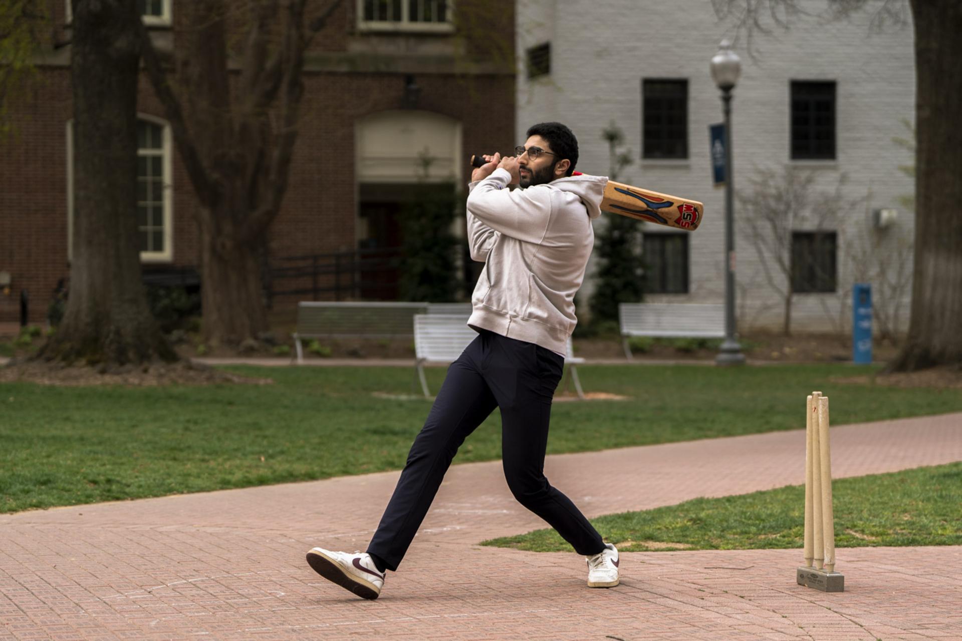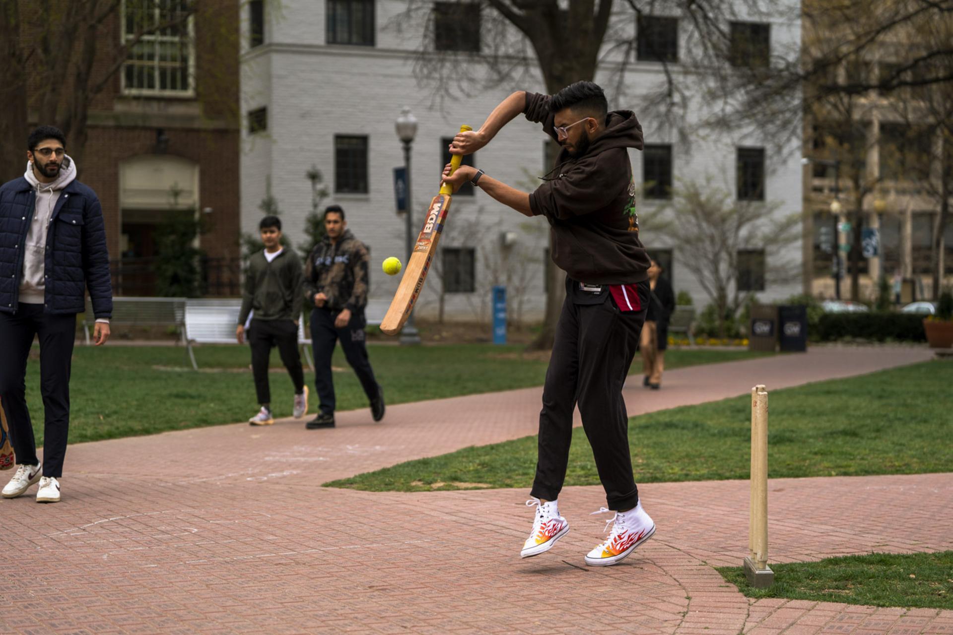As part of the George Washington University's South Asian Heritage Celebration, the GW Cricket Club demonstrated one of South Asia's most popular sports on University Yard Friday. Photos by Jordan Tovin.
