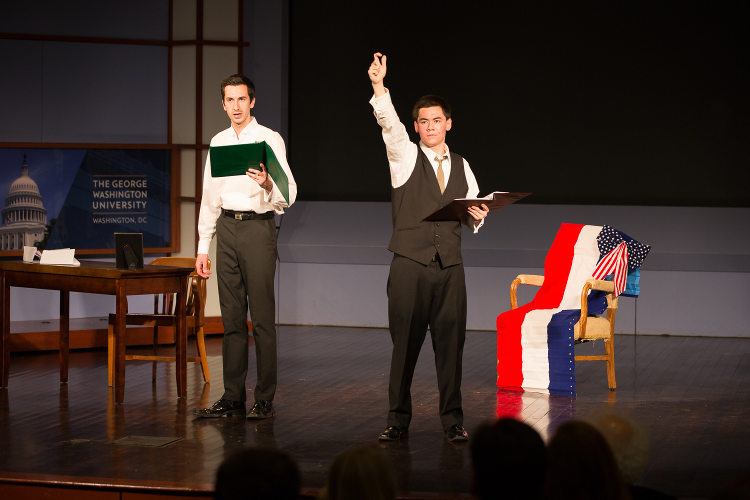 The play, which takes place in realistic and spectral settings, used letters and diary entries to create dialogue between Edwin Booth -- one of the leading Shakespearean actors of his time -- and the ghost of his brother, John Wilkes Booth, played by GW students Matthew Nickley and Nicholas Ong, respectively.