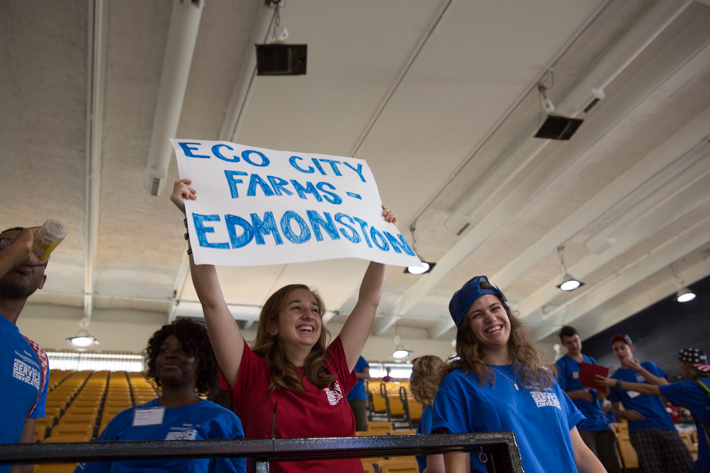 A temperature that felt like the upper 90s enveloped the midday crowd of volunteers as they boarded buses outside the Smith Center for service sites throughout the metro area armed with water bottles, box lunches and sunblock. Students, staff and faculty worked alongside 44 local partners Saturday on projects focused on environmental sustainability, veterans’ affairs, community beautification and healthy living.