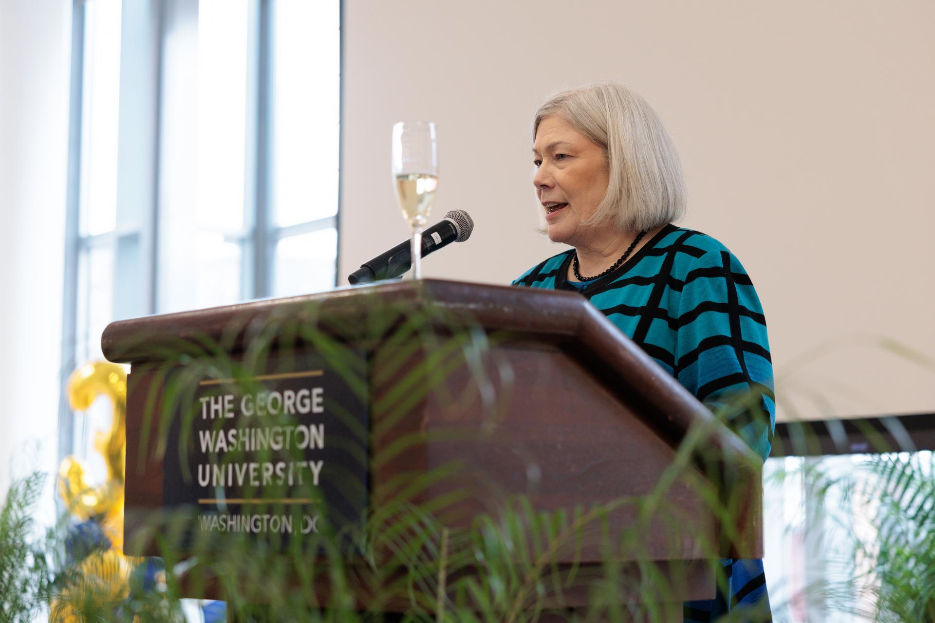 Granberg led all honorees in a toast, expressing her appreciation for the staff members who have dedicated their professional careers to moving GW’s values forward with people-first approaches. “Standing here, I’m struck not just by the number of years but by the depth of commitment, purpose and community this remarkable group represents,” she said.