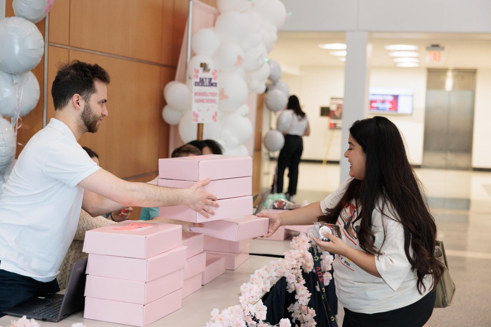 The Day of Excellence celebration was held at the Great Hall and Columbian Square on the first floor of the USC. The space was decorated with white and pink balloons and cherry blossoms and students were invited to enjoy free snacks and drinks while taking part in crafts and other activities with their friends.