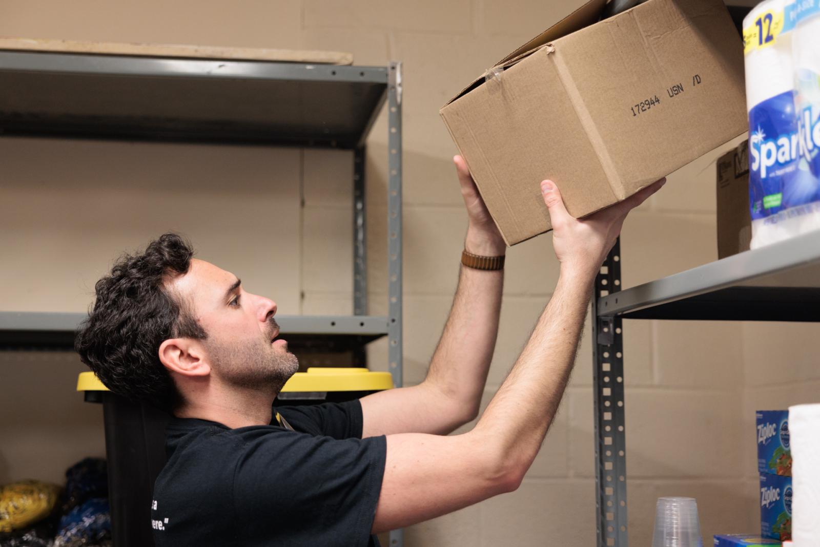 Landon McDonald joined Castillo in reorganizing a storage room where a stash of toys is kept that reward children’s attendance in the tutoring program. “I had ample time, a day off from school and everything,” he said. “I thought it was a great opportunity to come out and help today.”