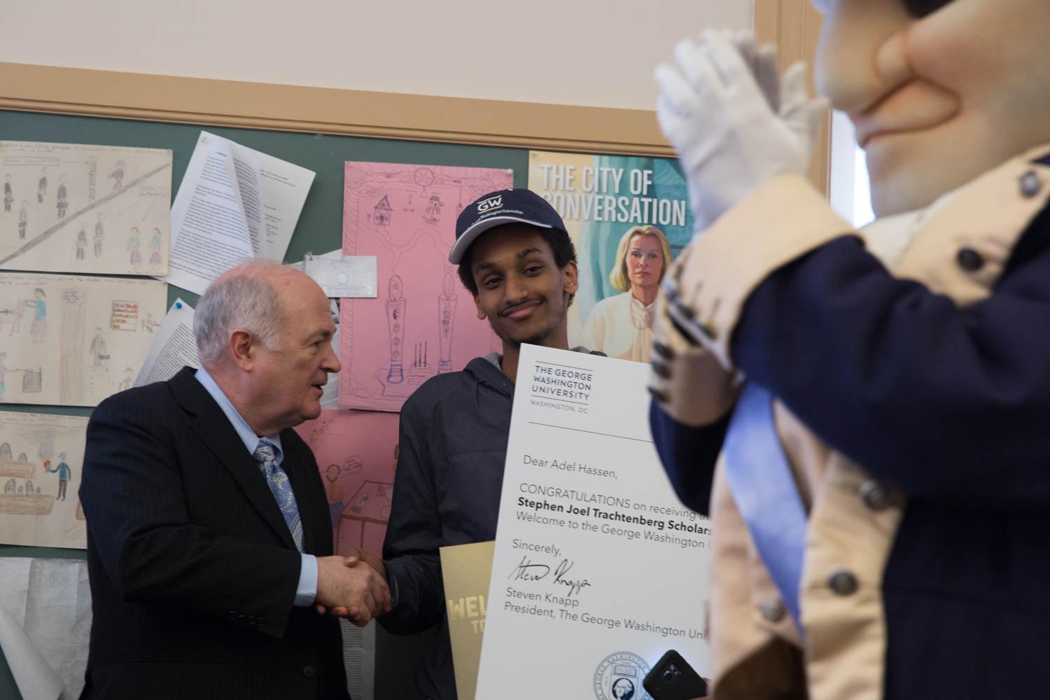 Ms. Walker knew she had been nominated for the Stephen Joel Trachtenberg Scholarship, which covers tuition, room, board and books for four years at GW and relieves families of the many financial burdens related to education. She was about to find out for certain that she had won.