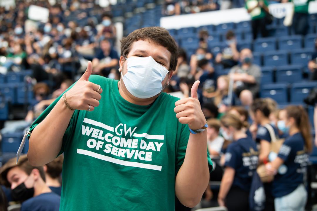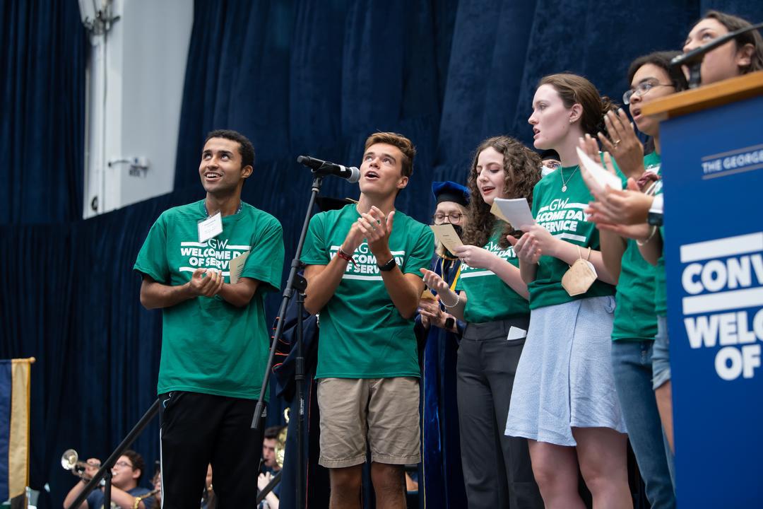 Deans of each individual school welcomed their particular students. Columbian College of Arts and Sciences rising senior Allyson Bonhaus led a call to action by informing the Class of 2026 of TurboVote, a nonpartisan voting tool the university utilizes to make the voting process easier and more accessible to students. The Class of 2026 then filed out of the arena and on to buses that took them to their first taste of making a difference in the community as GW students.