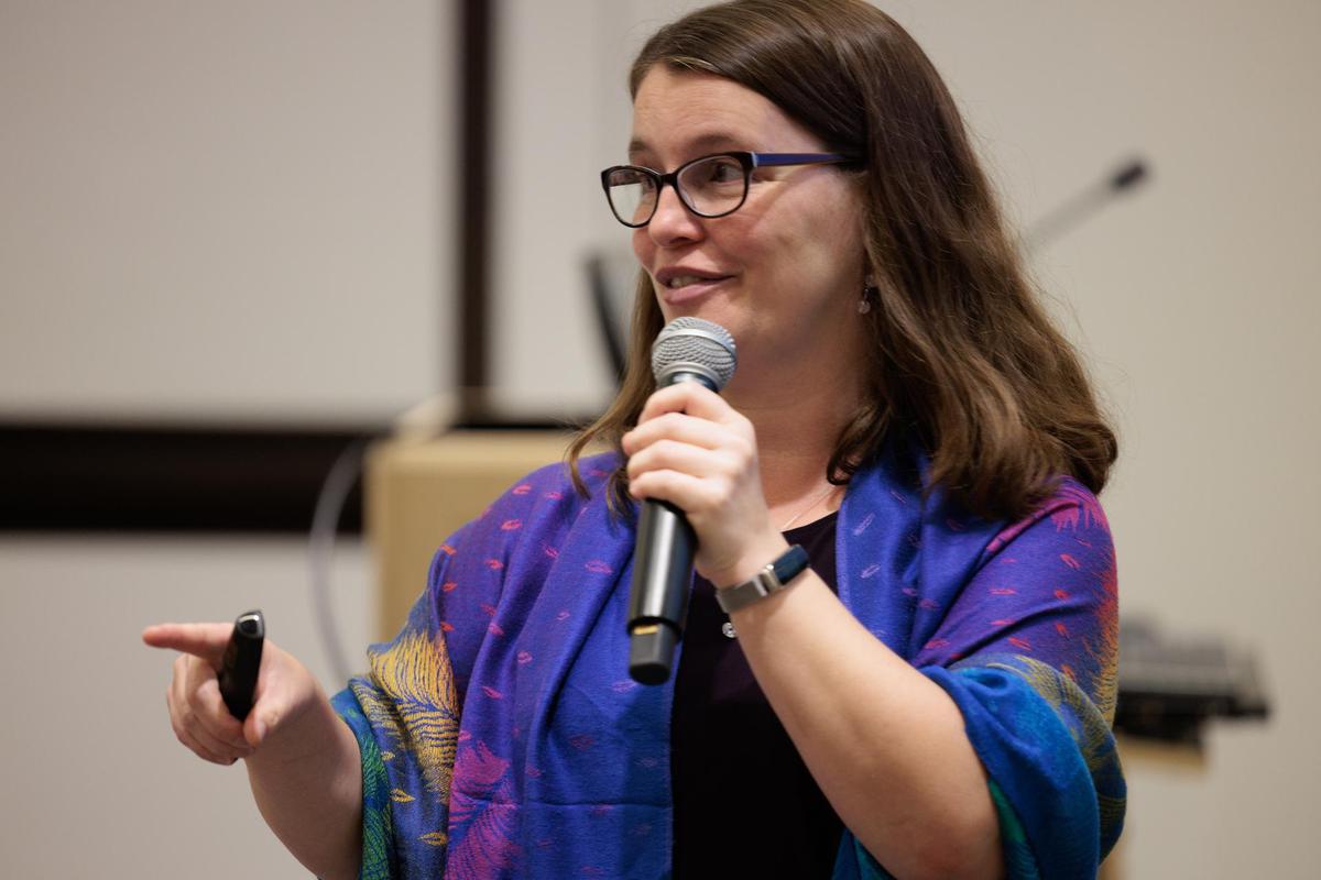 Keynote speaker Evangeline Downie, a professor of physics and the associate dean of research at the Columbian College of Arts and Sciences, gave a detailed account of the twists and turns her postdoc experience took after she completed her Ph.D. A lack of funding for research in the United Kingdom compelled her to leave her home, locating first to Germany and then the United States, with the expectation that she would return to Scotland.