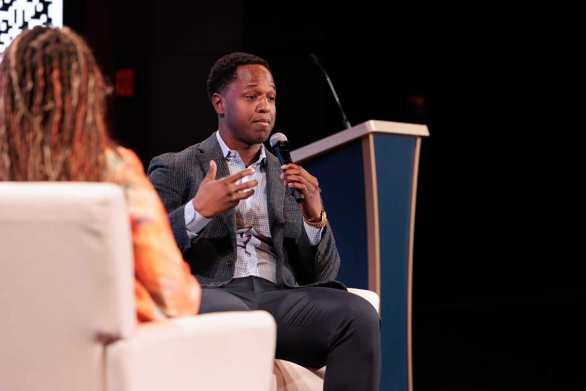 In the fireside chat that followed, Benjamin Harvey, assistant research professor in GW Engineering and founder of AI Squared, shared with Talmesha Richards, NSF I-Corps instructor, the mindset it takes to balance working with the federal government and building a successful startup—a combination of faith, risk taking and hard work.