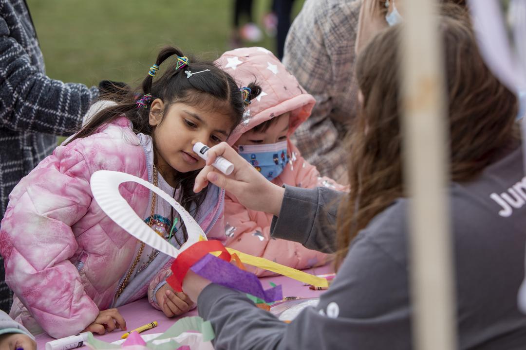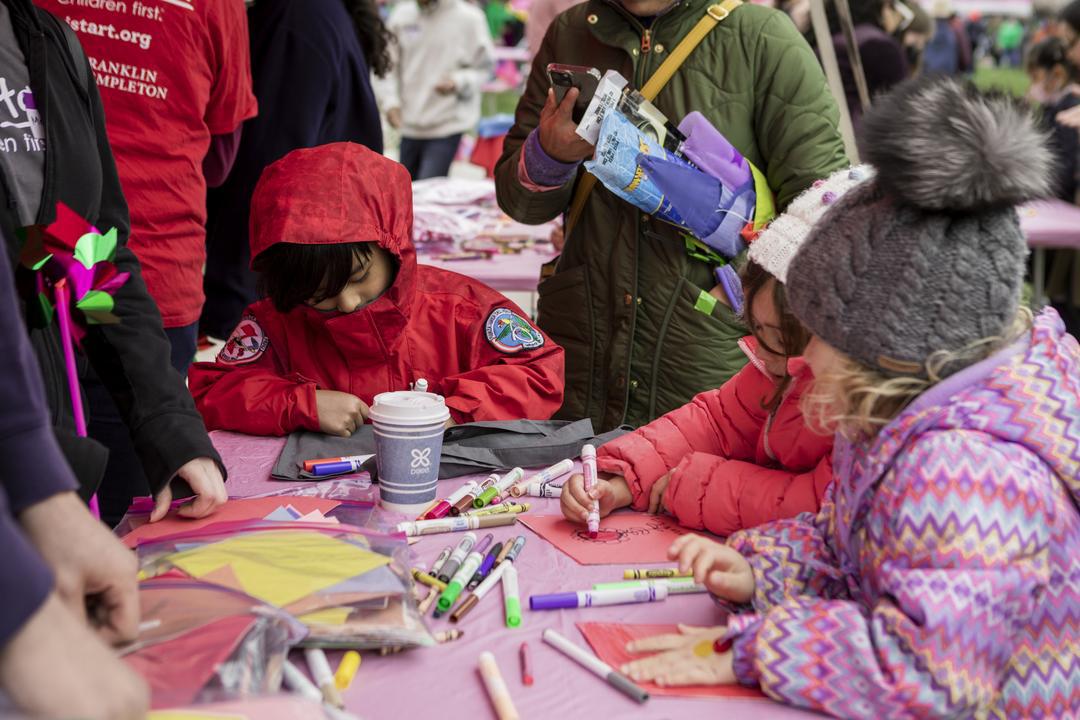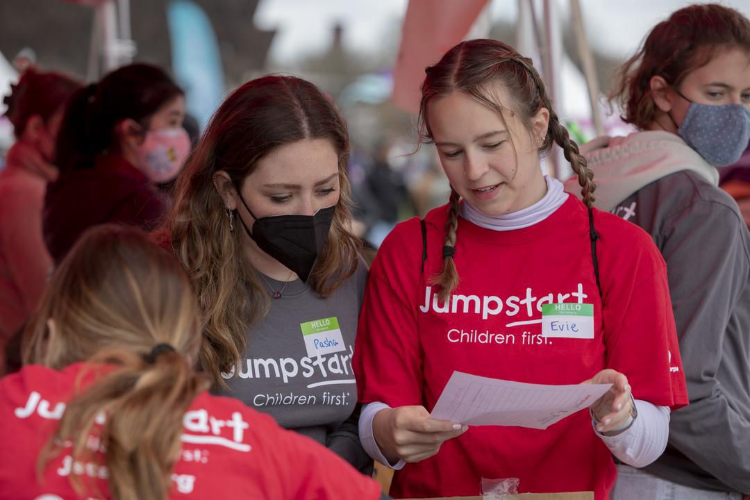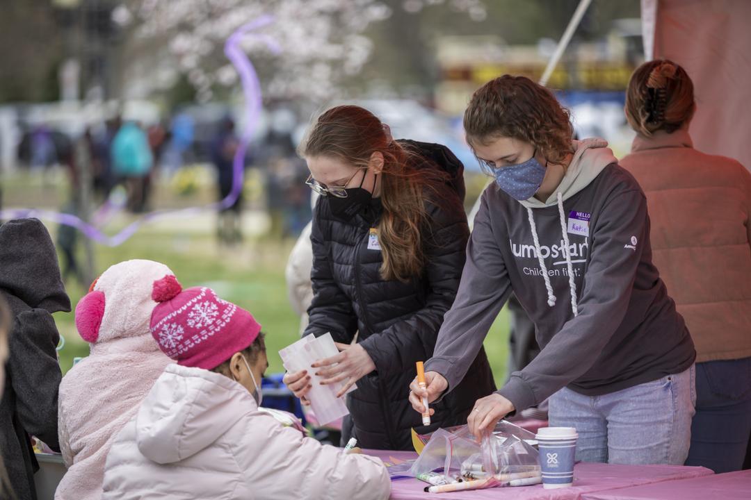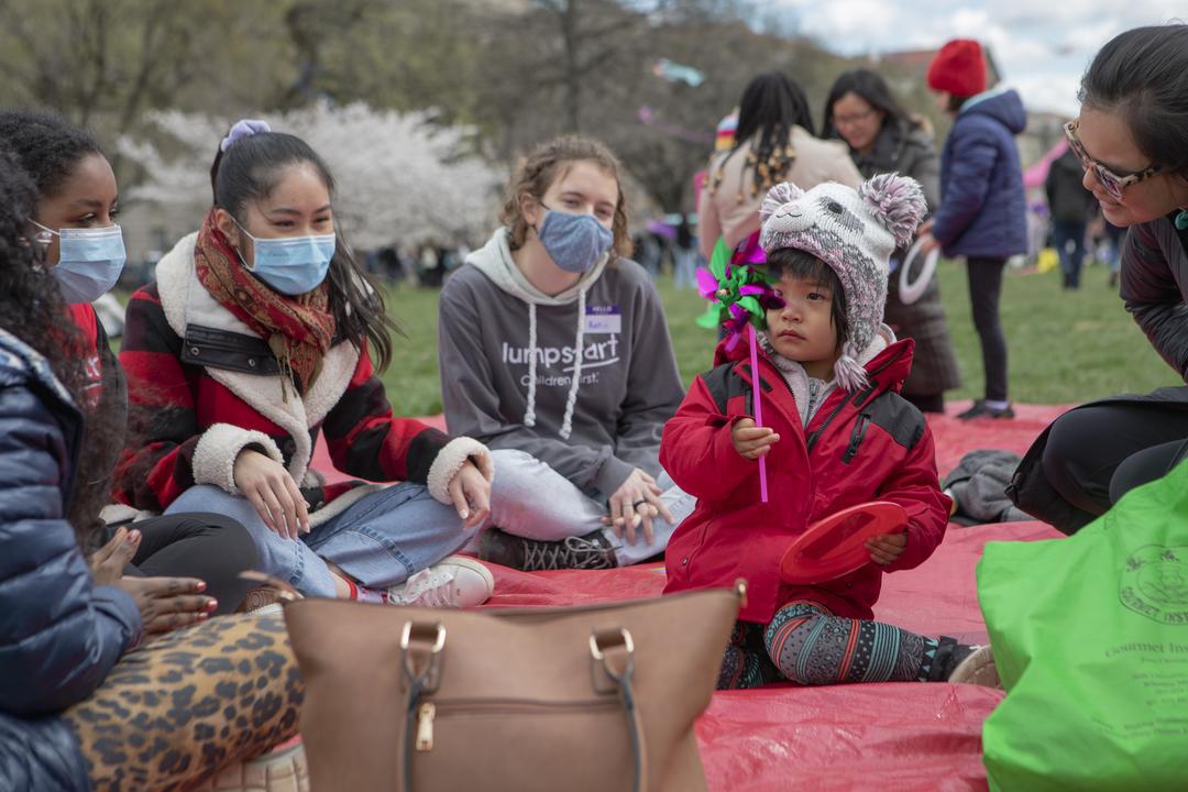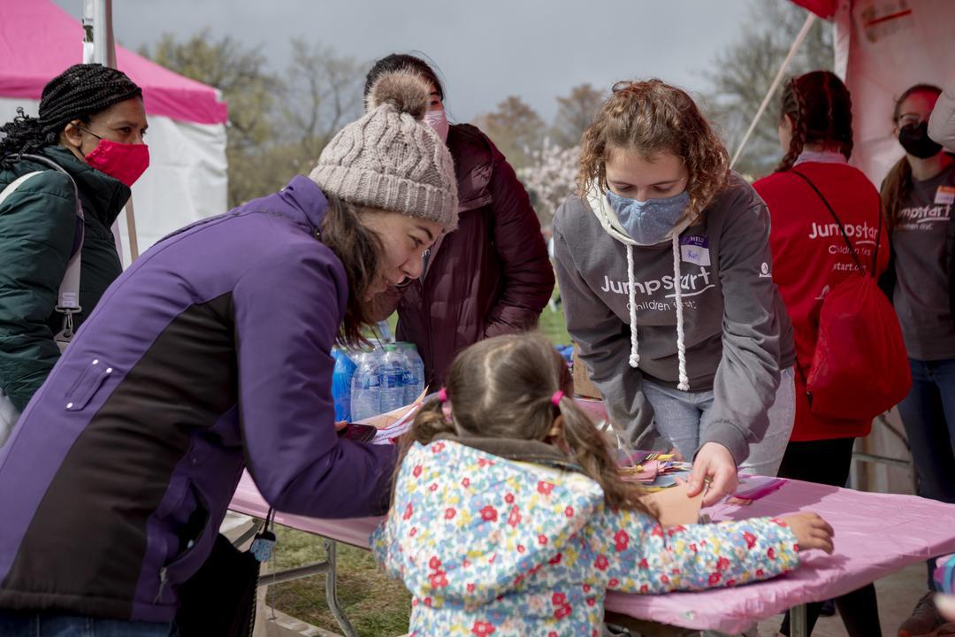 Jumpstart at GW, part of the national AmeriCorps program that trains and places students in teams to serve preschools in low-income neighborhoods for an academic year, hosted a booth supporting language and literacy for young children on Saturday at the Cherry Blossom Kite Festival on the National Mall. Jumpstart is a part of the Honey W. Nashman Center for Engagement and Public Service.