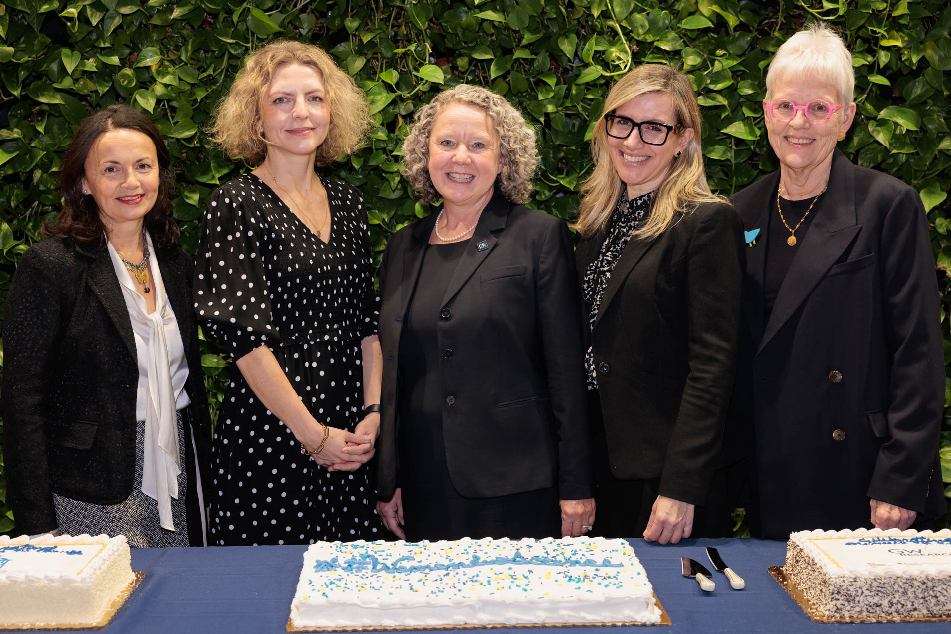 From left: Evelina Santa-Kahle, Mireille Guyader, GW Vice Provost for Research Pamela Norris, Giusi Condorelli and Kerstin Hildebrandt. (Photos: William Atkins/GW Today)