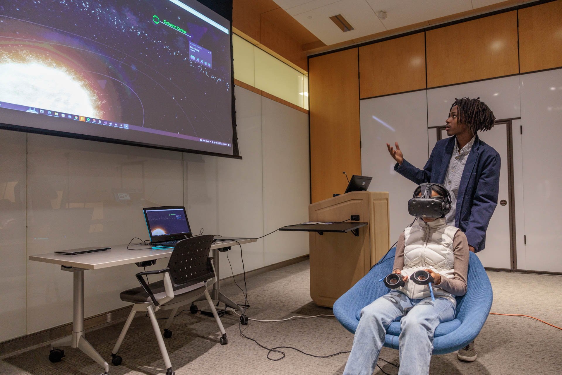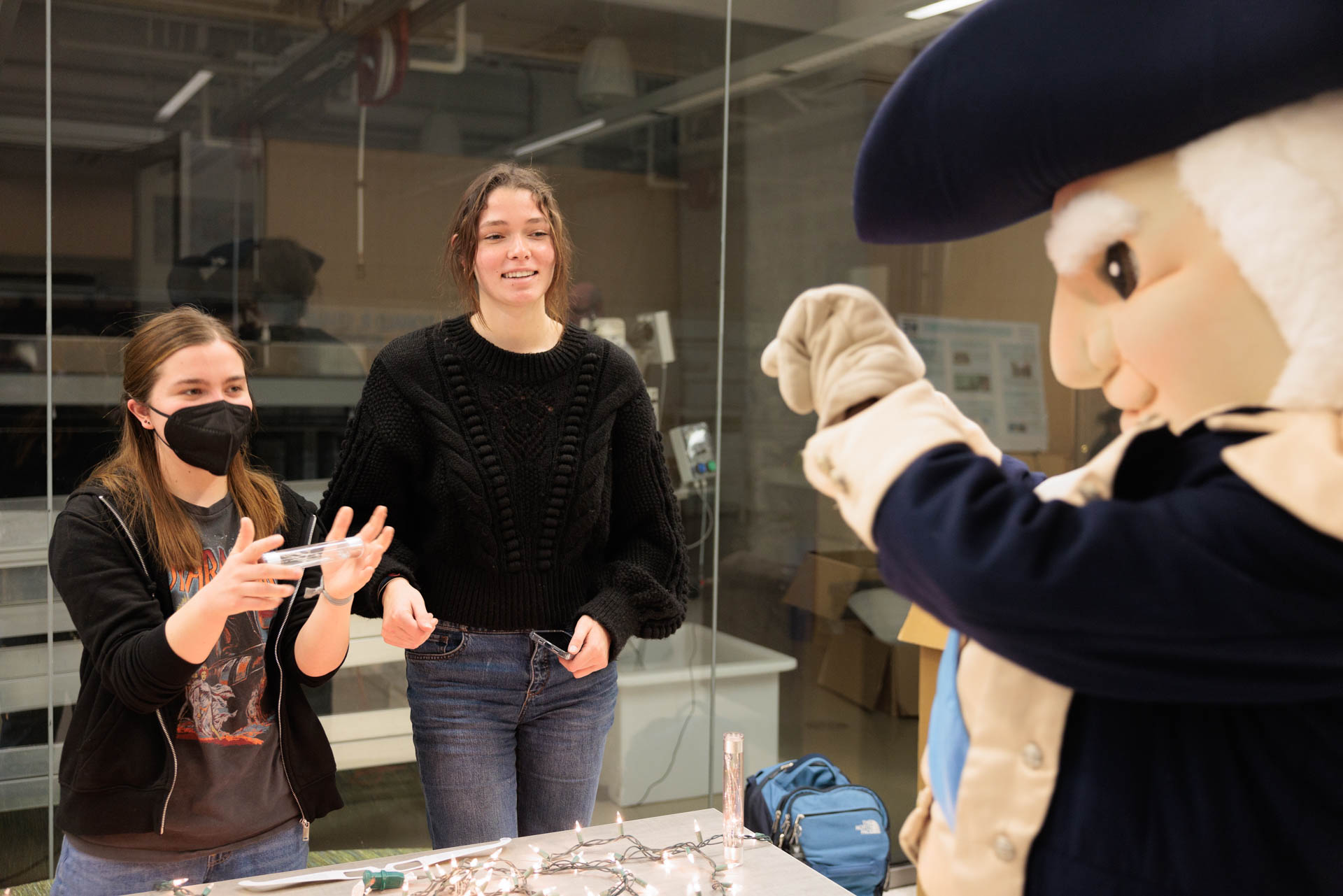 At the GW celebration, students, postdocs and faculty presented posters highlighting the various women in science student groups on campus and a sampling of their research. Hands-on activities included a virtual reality tour of the cosmos, building and racing bristle bots, extracting DNA from strawberries, and tours of GW’s state-of-the-art nanofabrication and imaging center.