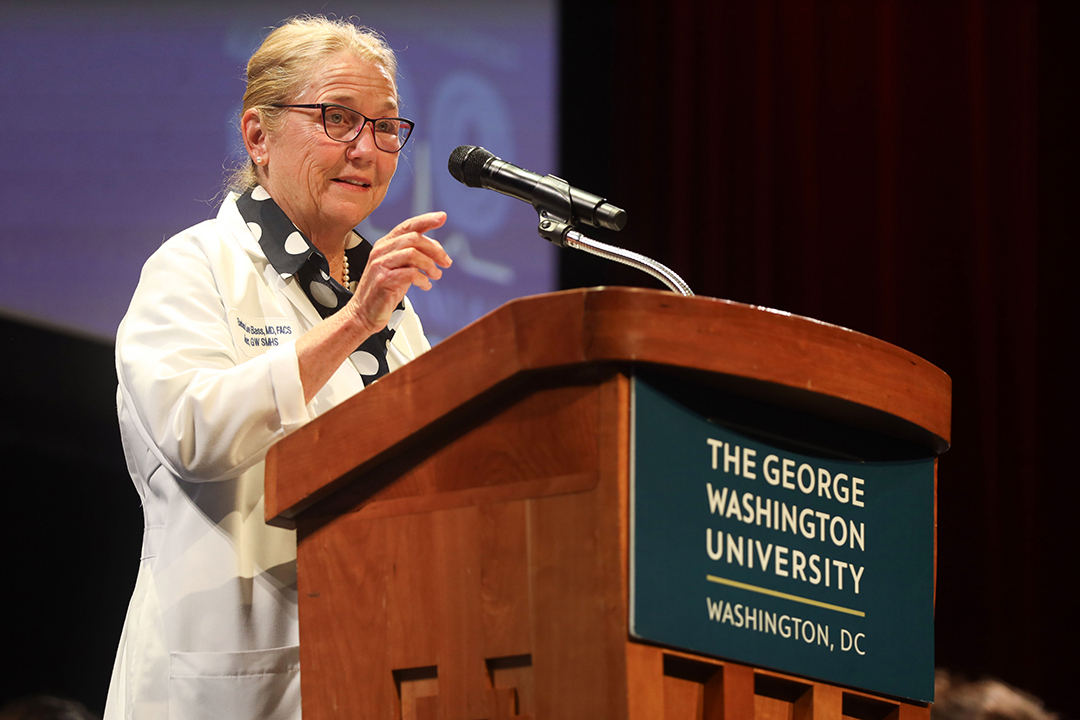 In her welcoming remarks, SMHS Dean Barbara Lee Bass, professor of surgery, Walter A. Bloedorn Chair of Administrative Medicine and vice president for health affairs, took a moment to acknowledge the accomplishments that led the students to this moment and thanked the family and friends on hand to bear witness to this first solemn step in their health care careers.