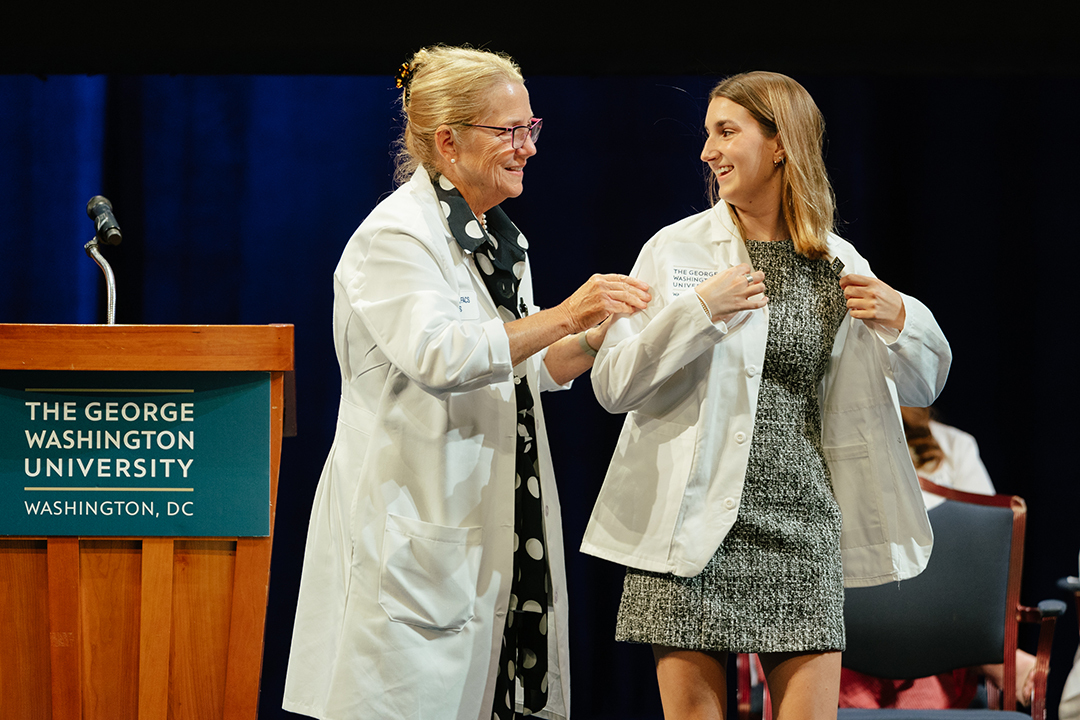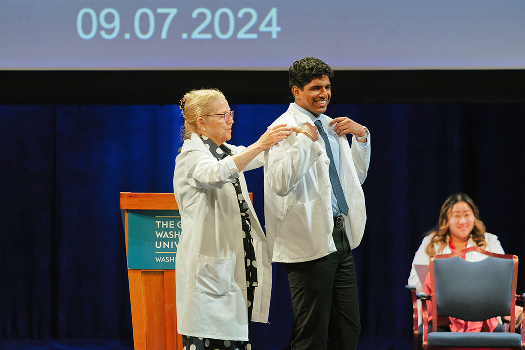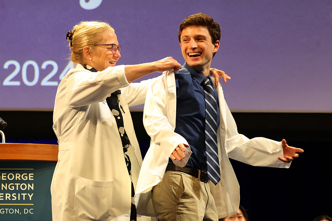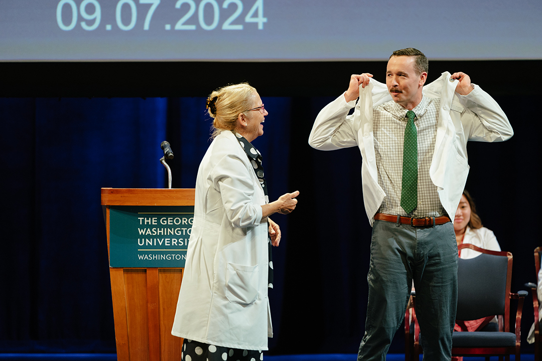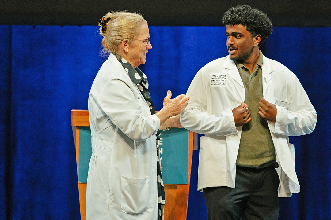 A white coat, said Prather, who serves as associate professor of medicine at SMHS and director of Geriatrics and Palliative Medicine at the GW Medical Faculty Associates, serves as a visible reminder of the obligations and responsibilities of being a doctor.
