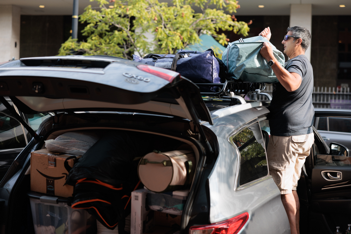 Padron’s Florida license plates reflected the many miles some students and parents covered as those on the back of the stuffed SUVs and cars backed into the sidewalk in front of university residence halls read Massachusetts, Michigan, New York and just across the river in Virginia—among others.