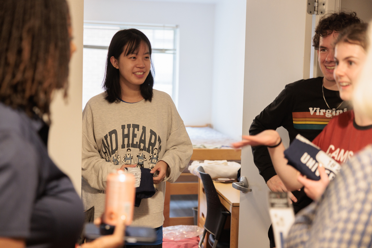 Weaving her way through the crowded lobby and hallways of Thurston, Granberg knocked on the door of incoming student Lydia Moreau, who has lived with her parents in the province of Yunnan, China, for 17 years where her parents, Scott and Vicky, run apple and cherry orchards. Moreau will have the company of roommate Amanda Dong, an international affairs major from Beijing, whom she met for the first time in person on Friday although they began communicating conveniently through the GW portal last May.
