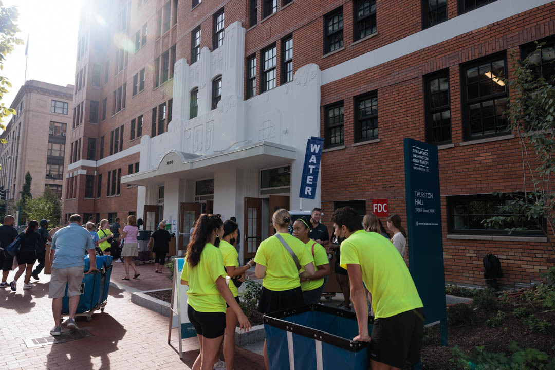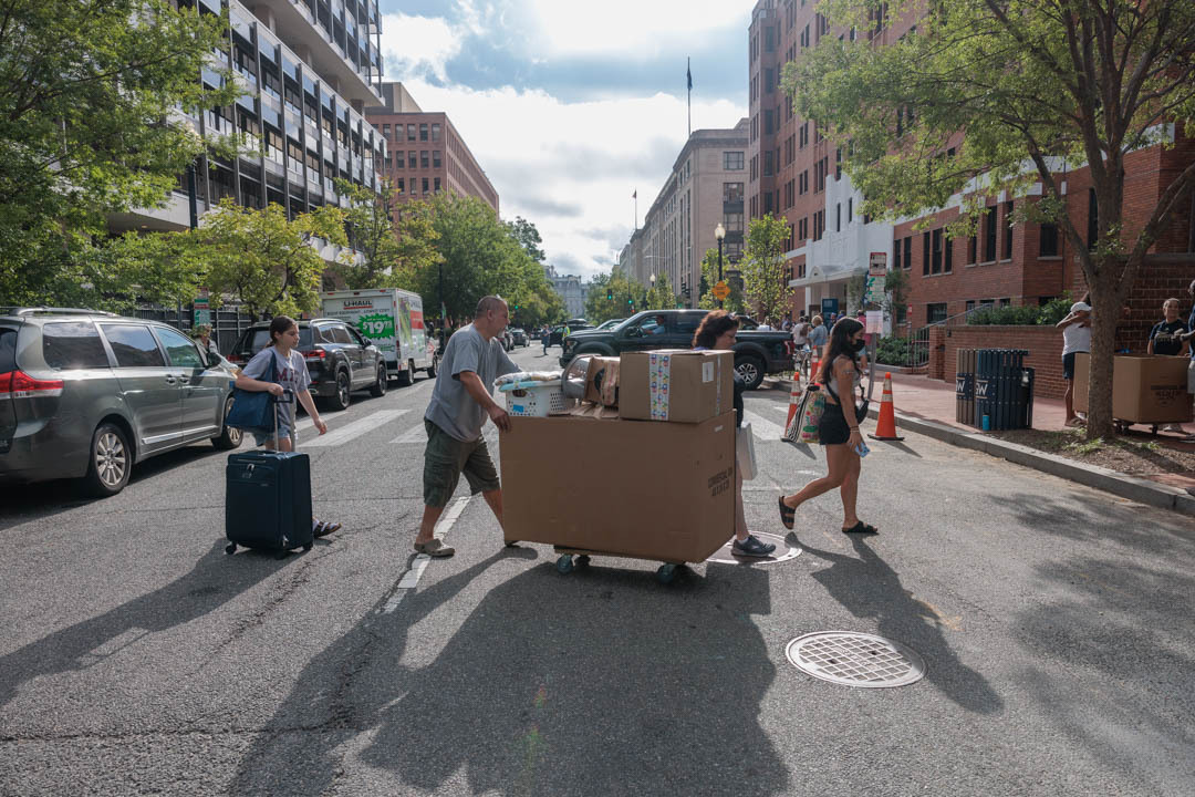 Move-In is an annual tradition signifying the start of another academic year. Throughout the week, vehicles with eager students about to begin their GW journeys and excited parents armed with suitcases, bedding and assembly tools flood the Foggy Bottom streets and Mount Vernon campus.