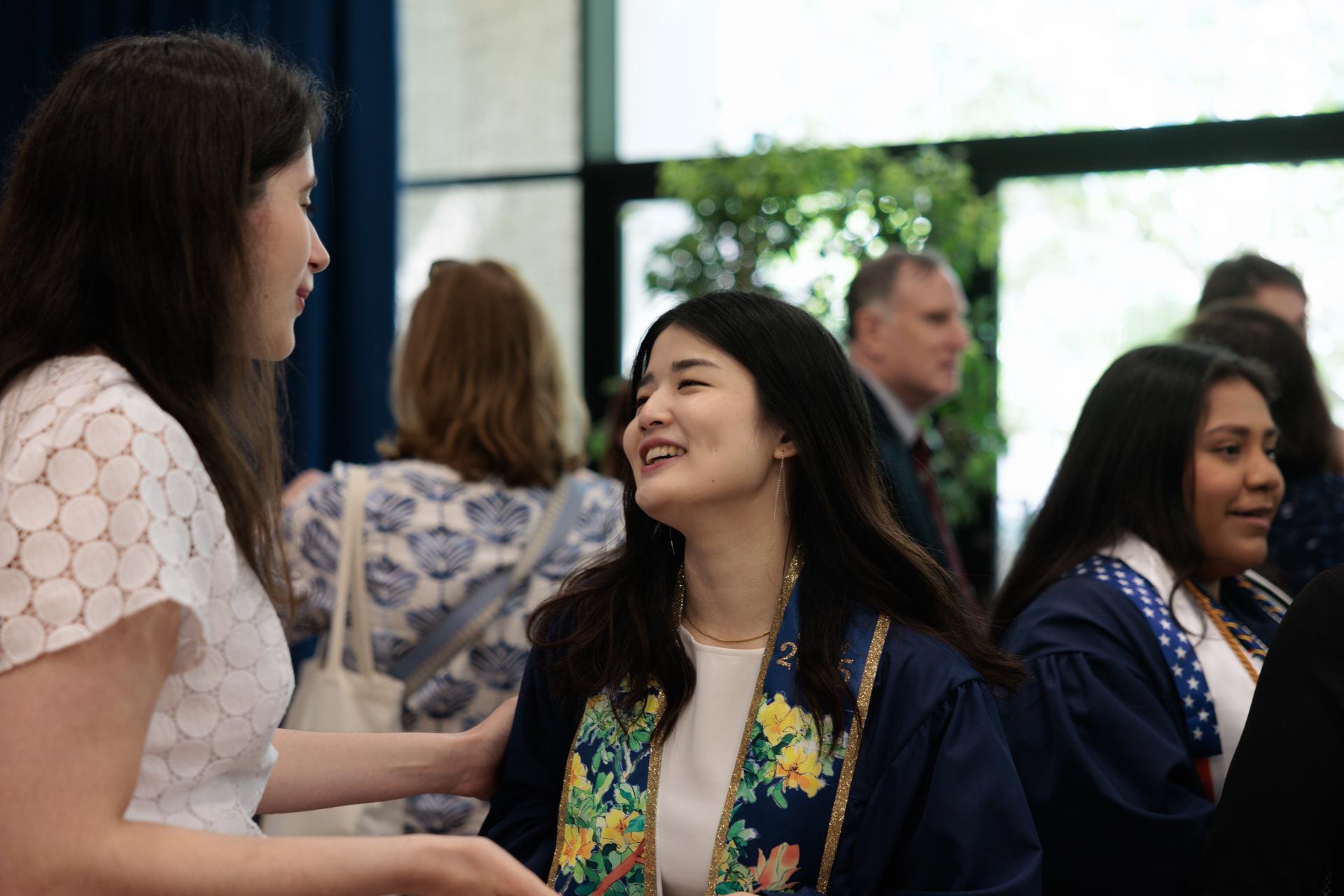 Members of the George Washington University's Class of 2025 came together on Saturday for the Center for Interfaith and Spiritual Life's Interfaith Baccalaureate, a celebration of the diverse religious, secular and spiritual traditions represented throughout the GW community. Graduates' guests, President Ellen M. Granberg, Provost Christopher Alan Bracey and Vice Provost and Dean of Students Colette Coleman joined the ceremony and reception, which was held in the University Student Center's Continental Ballroom.