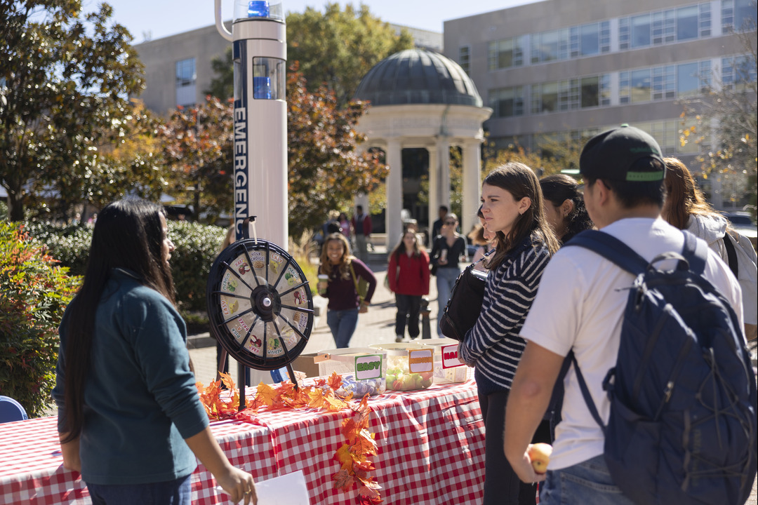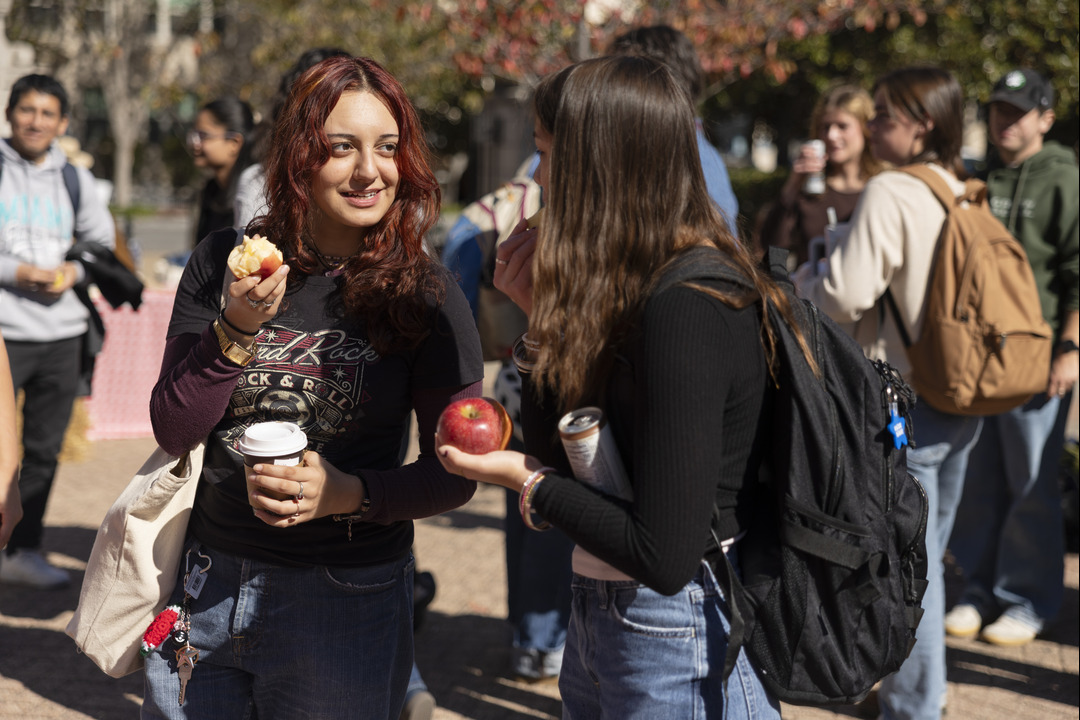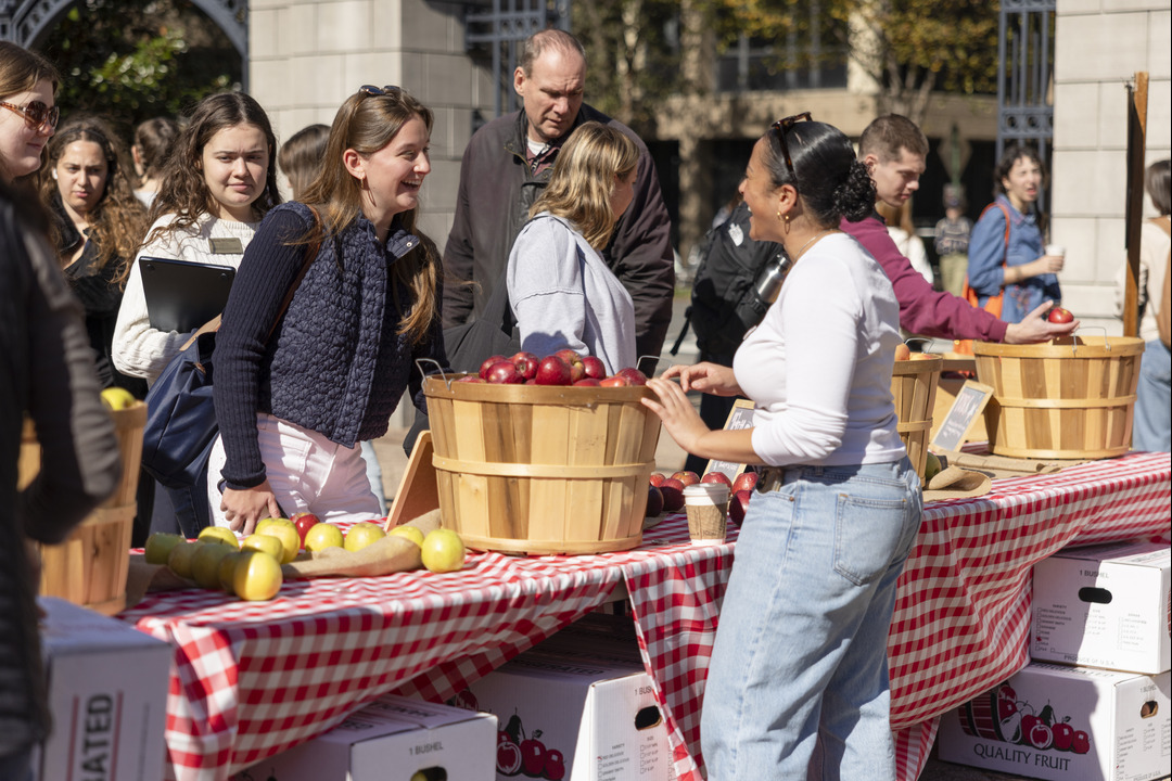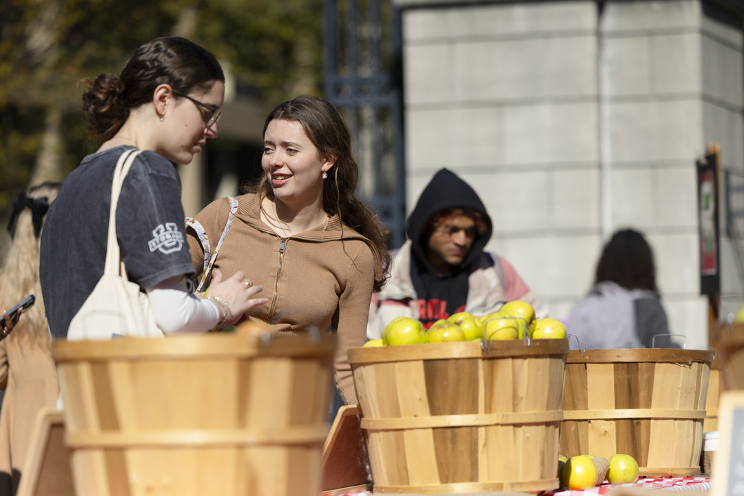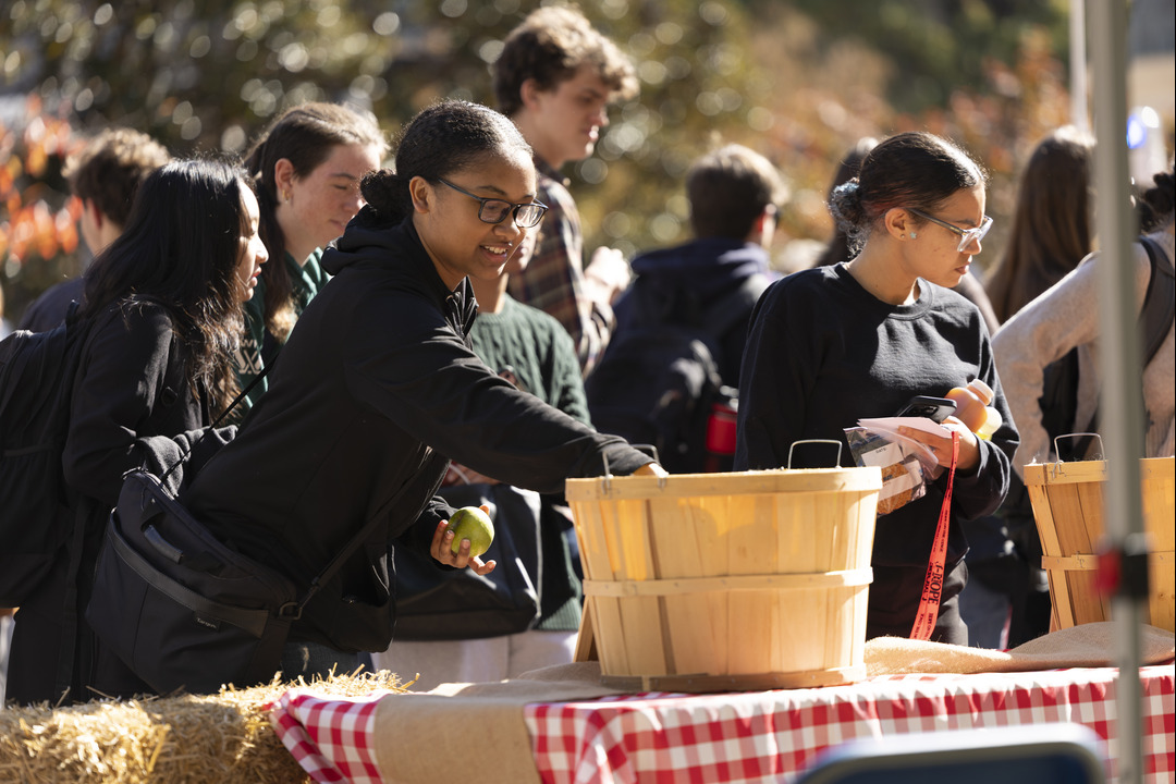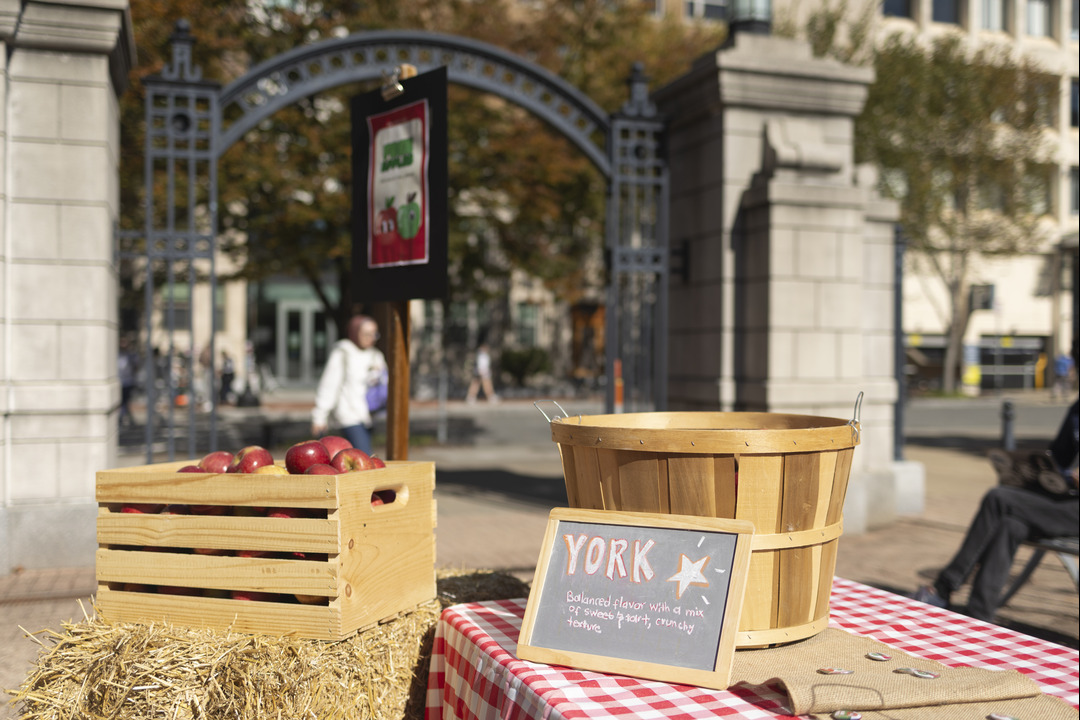 How do you like them apples? Well, "a lot" was the answer Thursday afternoon at the George Washington University as students, faculty and staff congregated on Kogan Plaza for Apple Day, an annual tradition that celebrates the fall harvest and features locally grown apples. Complete with cornhole, bluegrass music, games and caramel dips, Apple Day provided the GW community a nice respite on a sunny fall afternoon.