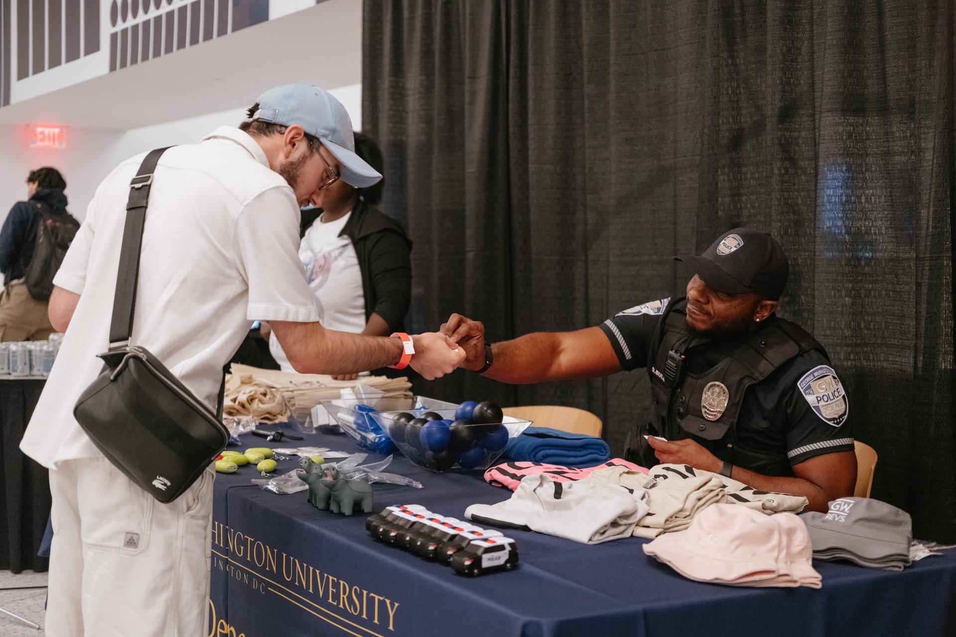 The George Washington University Police Department held a fall outreach event, called Raise High With GWPD, Wednesday in the University Student Center to build community with students and share safety tips and resources. The event, filled with food, games, music, prizes and information booths, allowed the GW community to engage with GWPD in a non-law enforcement capacity.