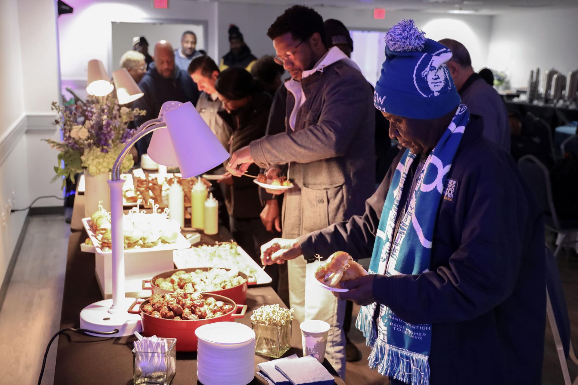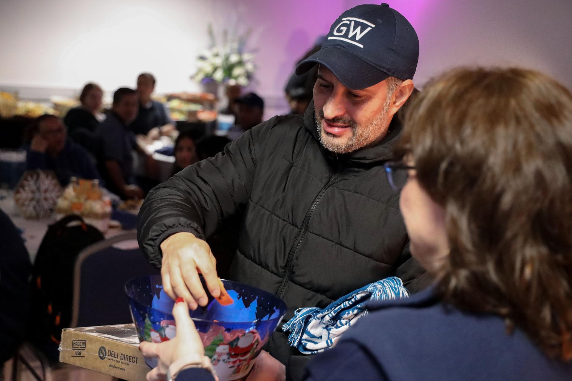 This year, there were three different gatherings. The Virginia Science and Technology Campus held its celebration Tuesday in Enterprise Hall, employees at the Foggy Bottom Campus had theirs at the University Student Center on Wednesday and those who work the overnight shift gathered from 10 p.m. to midnight Wednesday night also at the University Student Center.
