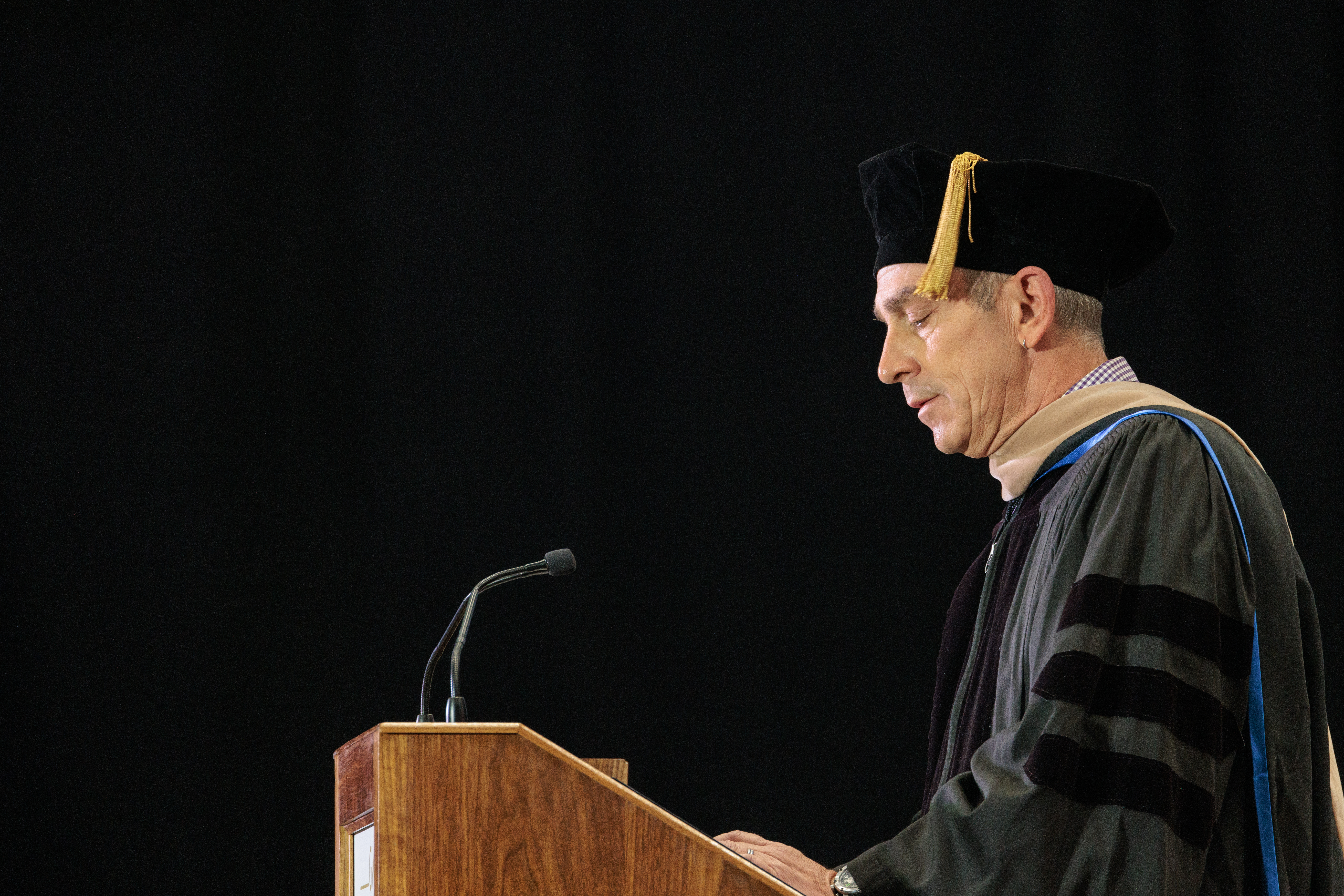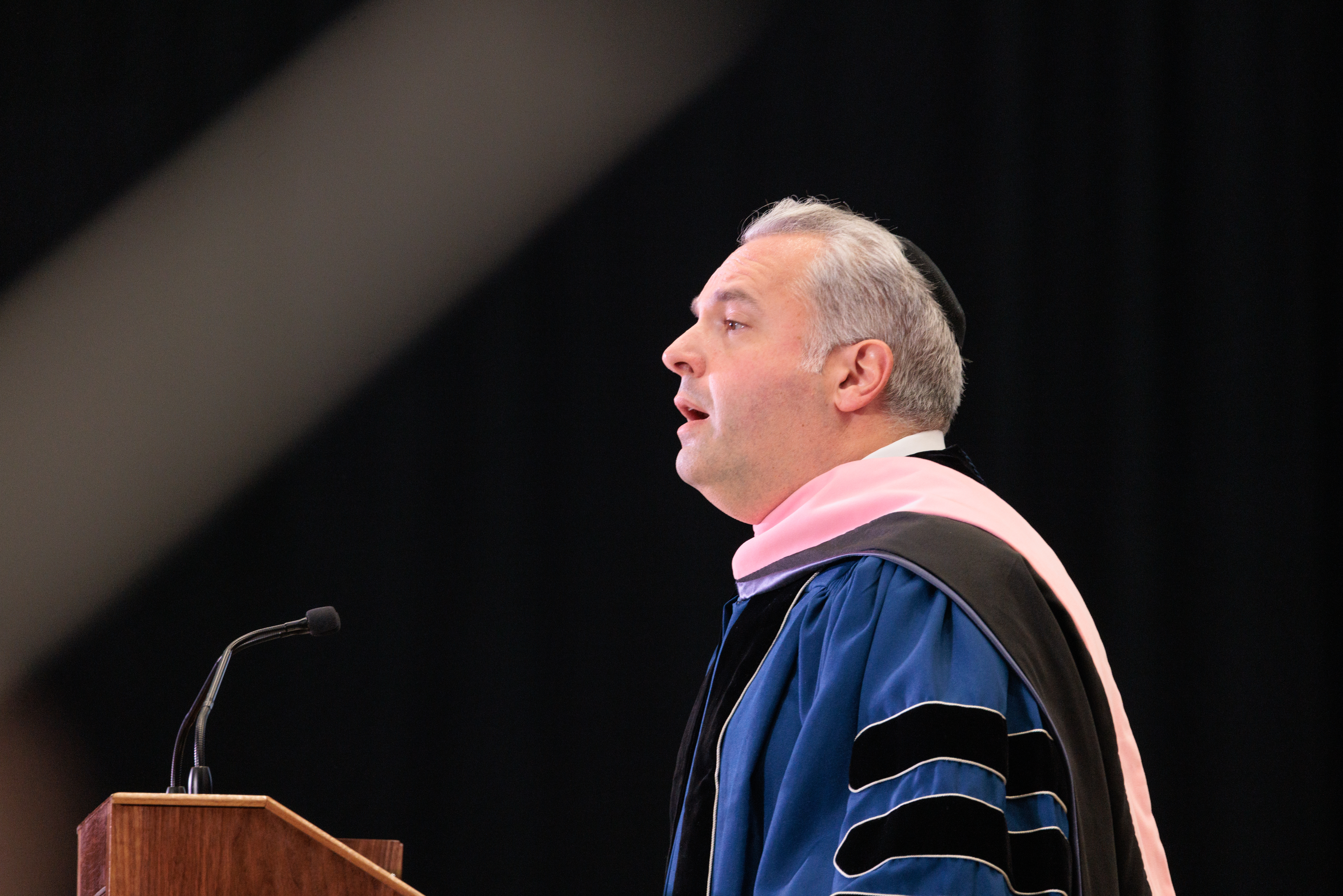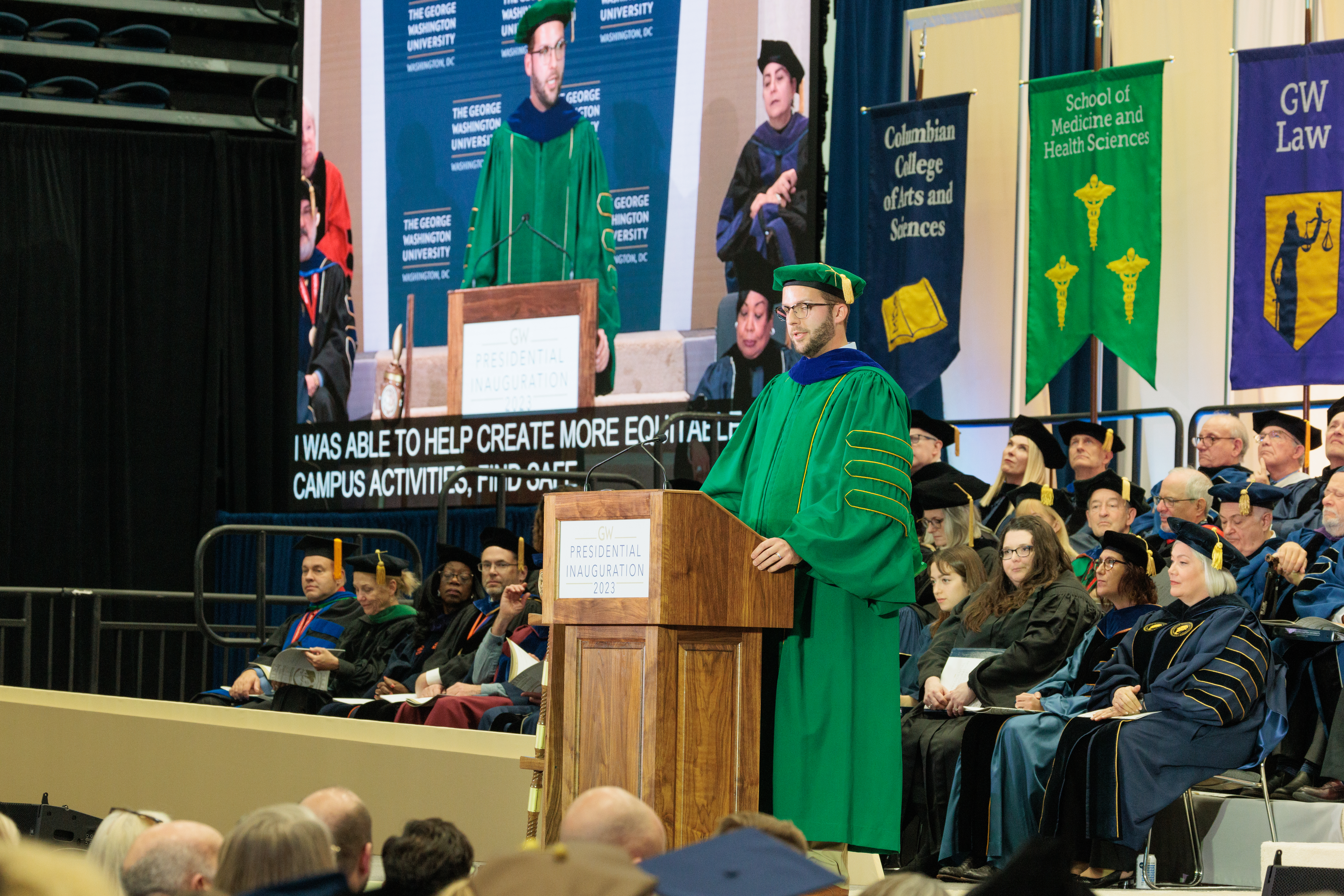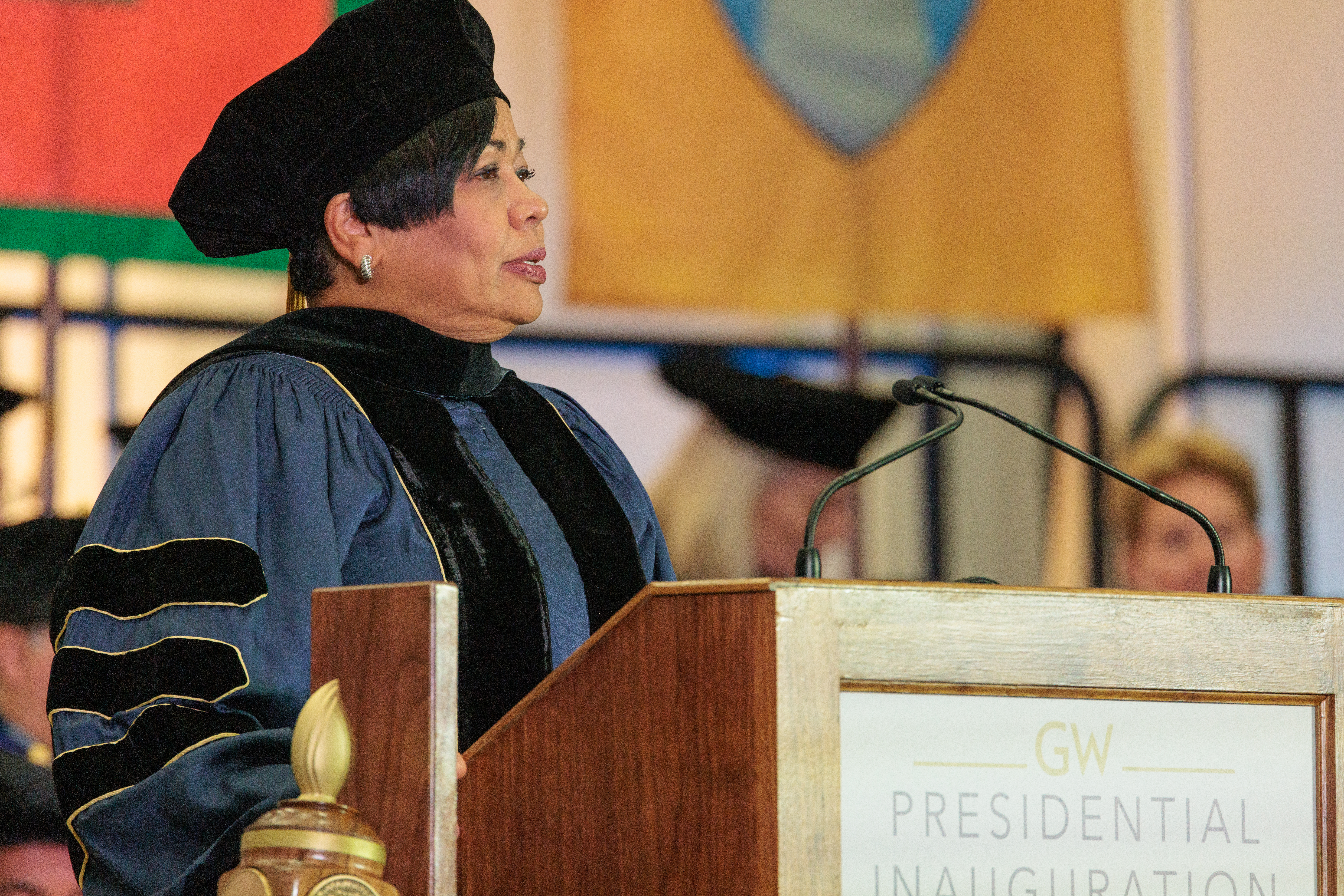 In addition to Granberg, speakers included Provost Christopher Alan Bracey, who delivered welcome remarks; Board of Trustees Chair Grace Speights, J.D. '82; Chair of the Faculty Senate Executive Committee Ilana Feldman; international affairs student and Student Association President Arielle Geismar; GW Staff Council President Bridget Schwartz; GW Alumni Association President Maxwell-Gocala-Nguyen, M.A. ’16; Professor and Director of the Graduate Program in Islamic Studies Mohammad H. Faghfoory; alumnus Gideon Zelermyer, B.A. ’97; and Multicultural Student Services Center Director Dustin J. Pickett.