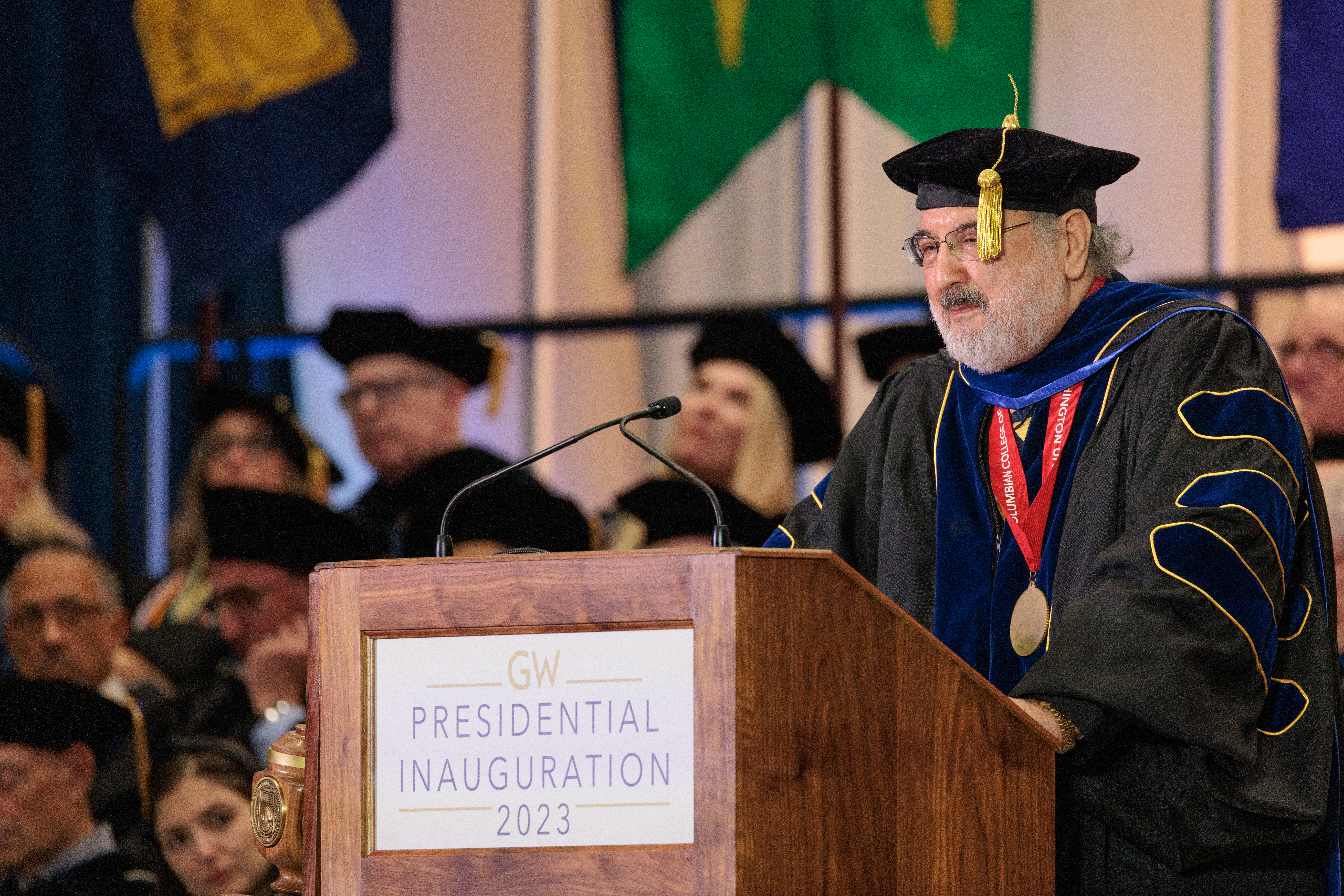 Former GW presidents Stephen Joel Trachtenberg, Steven Knapp, Thomas J. LeBlanc and Mark S. Wrighton were also in attendance.