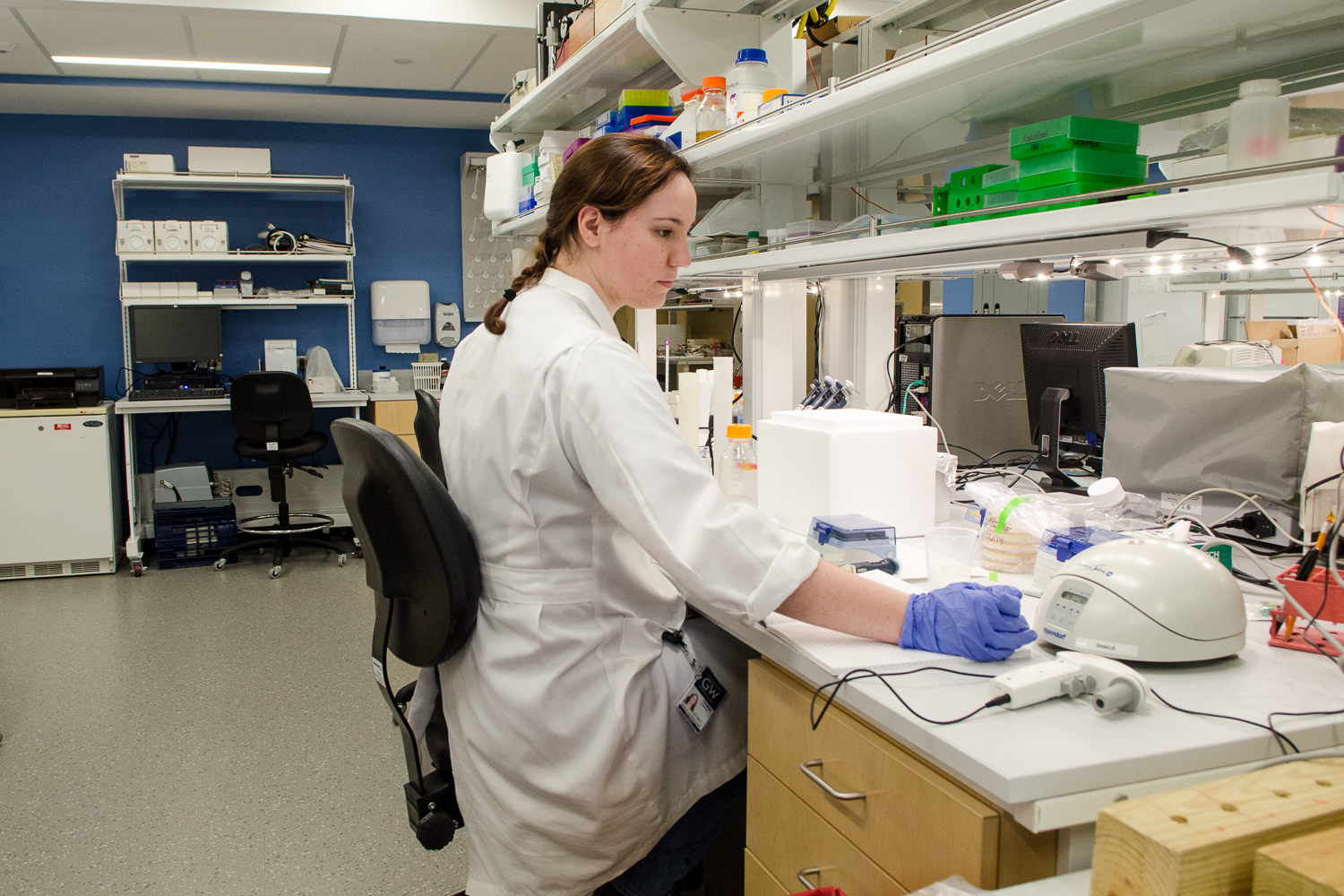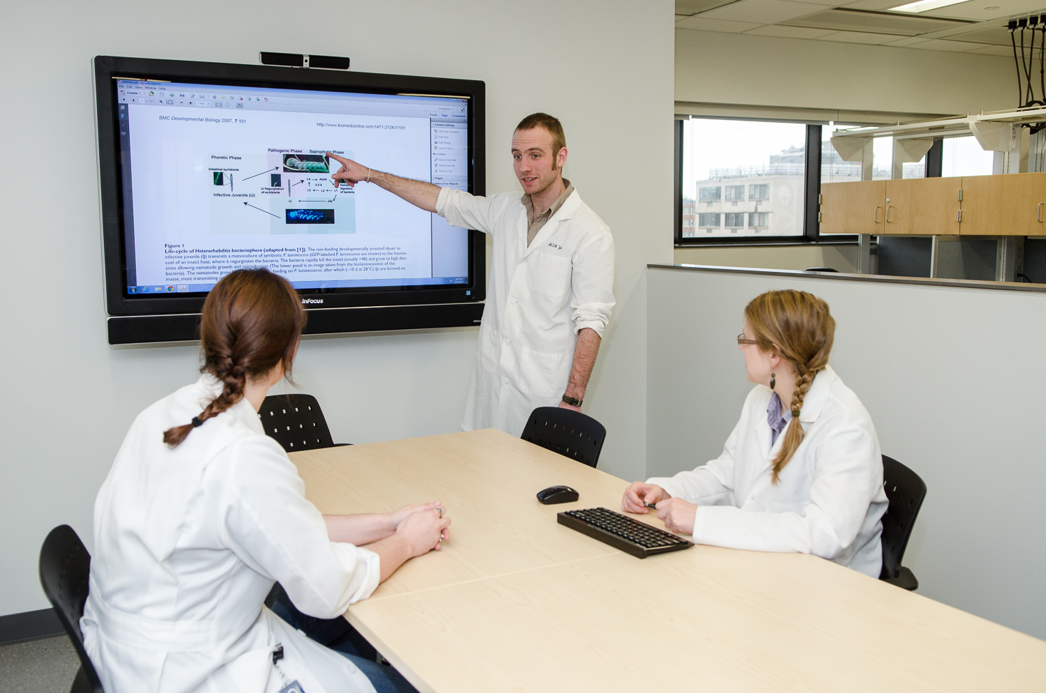 The nearly 35,000-square-foot lab space, which occupies the fifth and sixth floors of Ross Hall, features two “interaction” areas, 104 individual work stations, a microscope room and a tropical life cycle where parasites can be cultured. These spaces were created to encourage discussion, collaboration and innovative research.