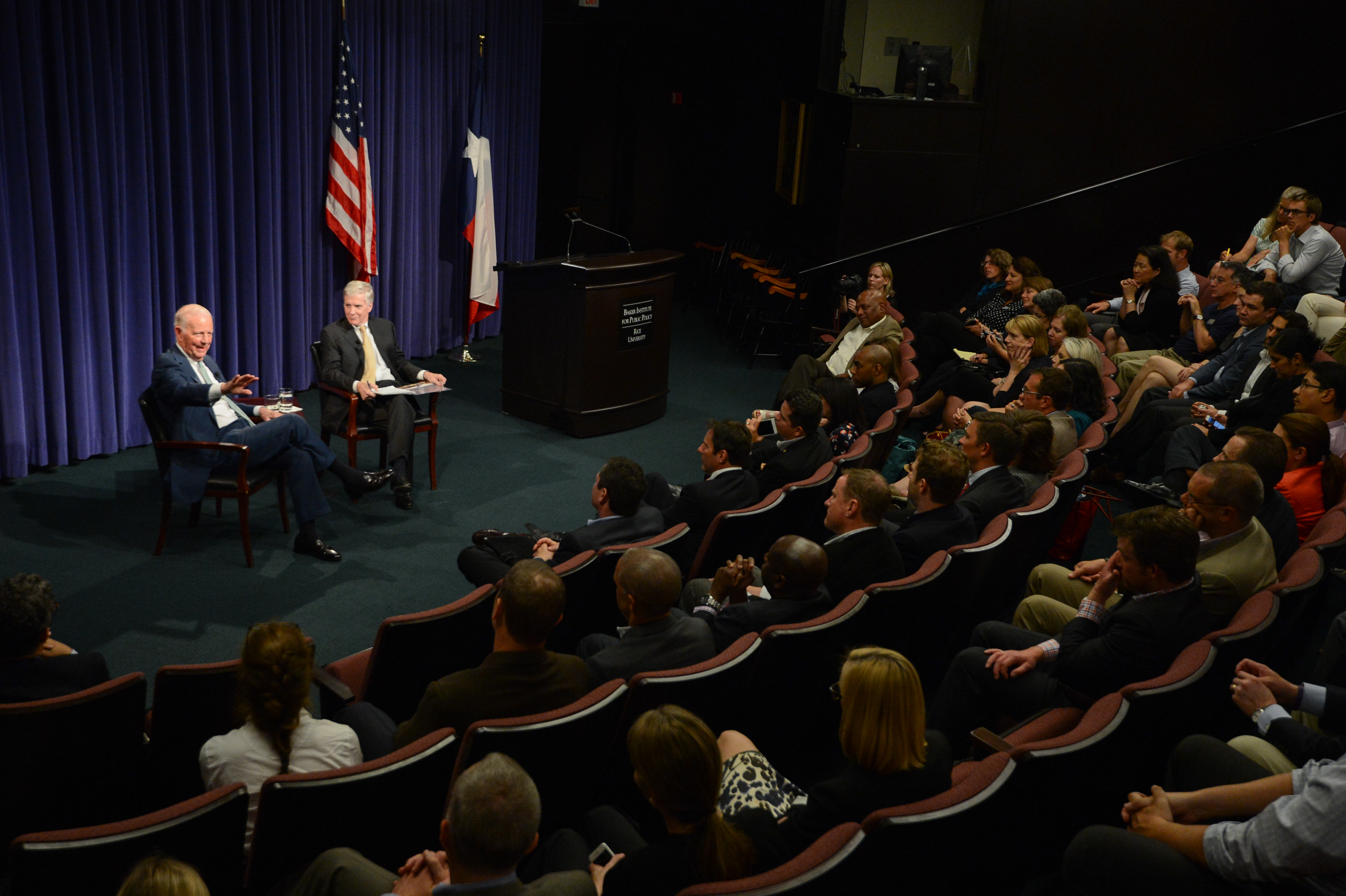 Vice President Joe Biden spent part of his Thursday morning at the George Washington University, where he visited with volunteers at a 9/11 Day of Service event hosted by Points of Light, the Corporation for National and Community Service and Operation Gratitude. The vice president later stopped to say hello to GW students outside the Charles E. Smith Center.